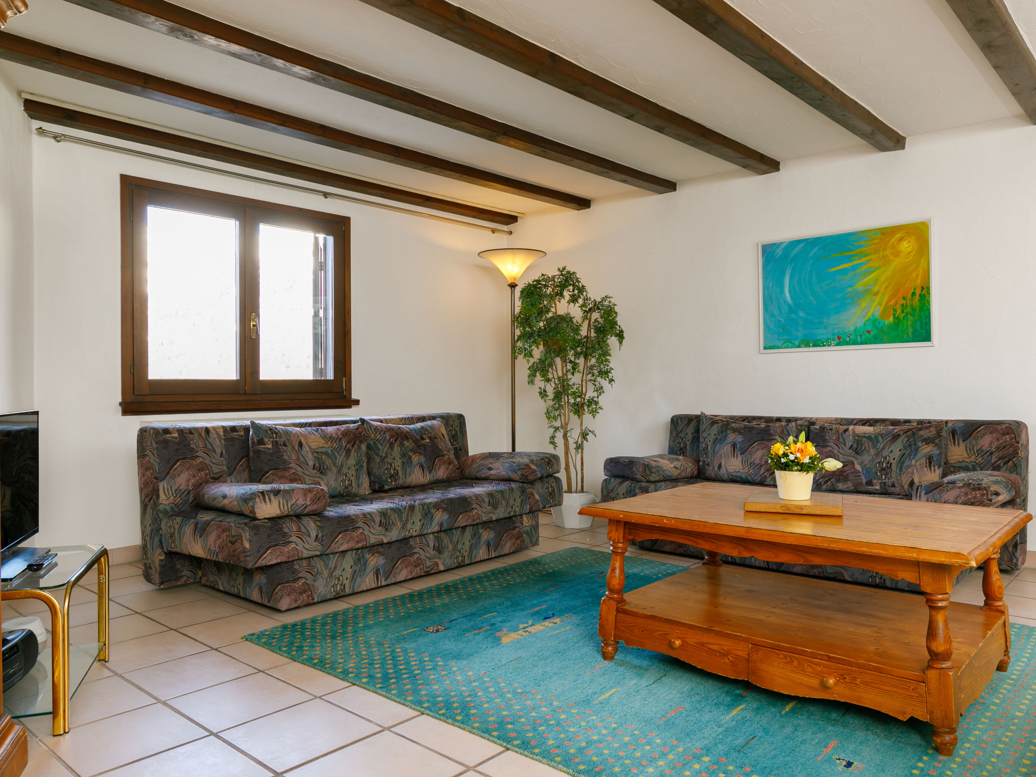 "Residenza Chesa Margun 66-1", 2-room apartment 77 m2, on the ground floor. Bright, cosy furnishings: living/dining room with 1 double sofabed, digital TV, flat screen and radio. 1 room with 2 beds and electric heating. Exit to the balcony. Kitchen (oven, dishwasher). Bath/WC. Electric heating. Terrace, south facing position. View of the mountains and the garden. Facilities: Internet (WiFi, free). Suitable for families.