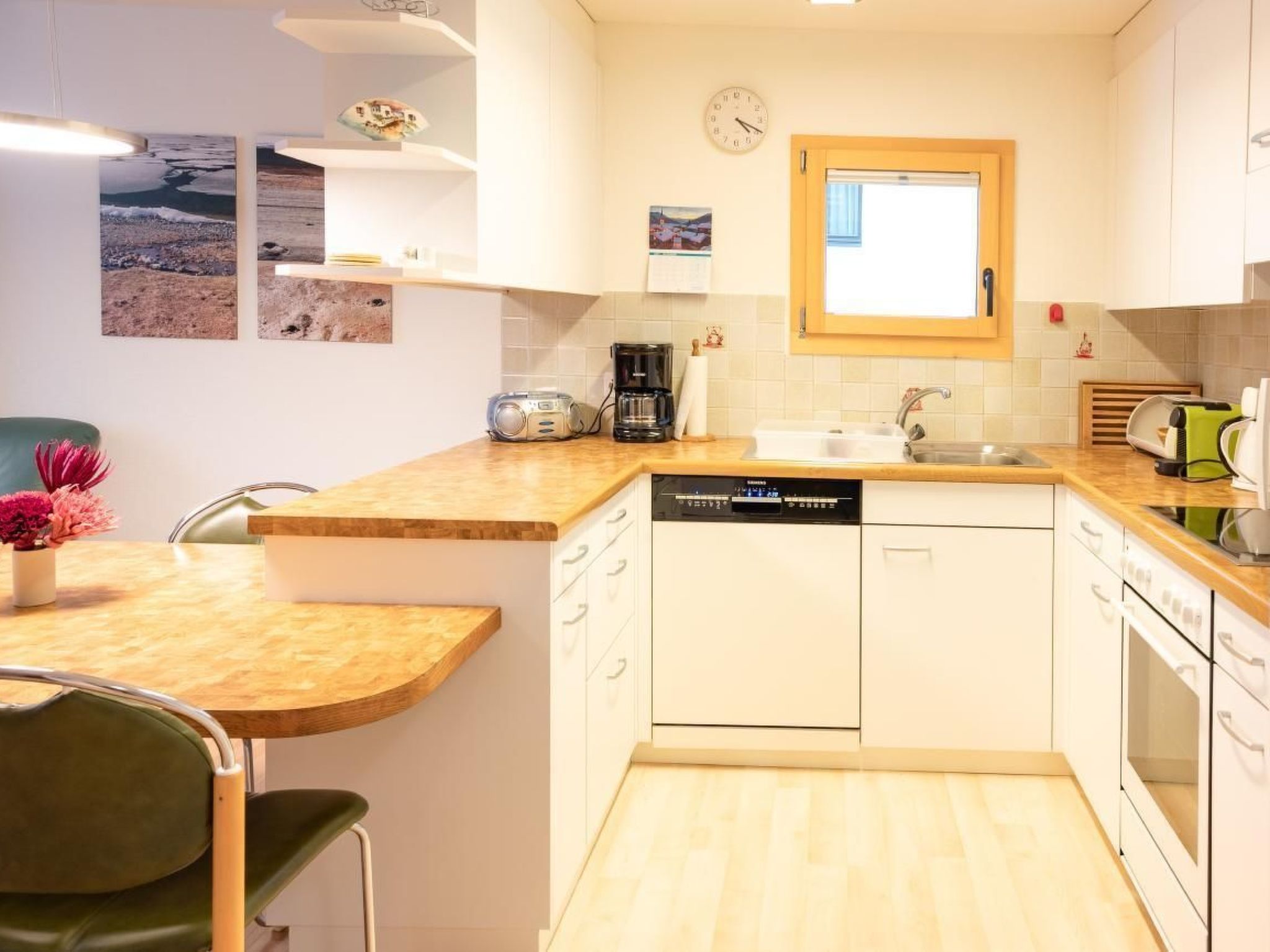 The separate kitchen with dining table for 4 people is equipped with a refrigerator with integrated freezer compartment, oven, stove, dishwasher, Nesspresso coffee machine.
