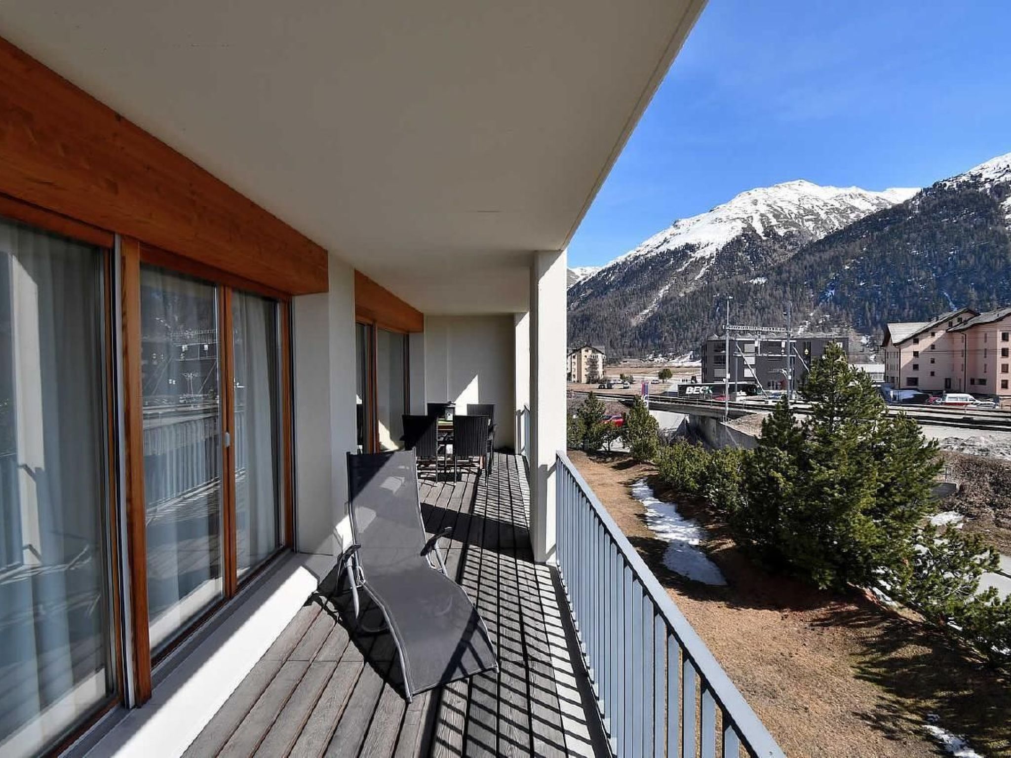 The large balcony is the highlight of the outdoor area and offers an uninterrupted view of the impressive panorama of the Engadine mountains. A garage and a lift/elevator provide additional comfort. The bus stop is just 100 metres away, making the accommodation an ideal starting point for various activities.