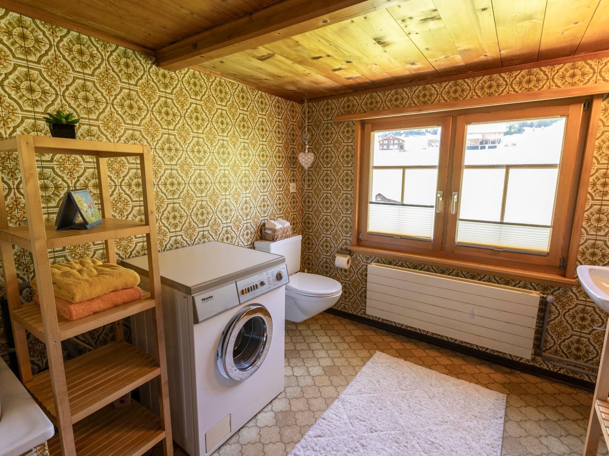 A warm atmosphere welcomes you into the flat. An inviting living room with sofa, corner bench, table and chairs, two armchairs, a bookshelf, coffee table, TV and radio ensure your comfort. The kitchen is equipped with everything your heart desires: a raclette oven, fondue set, kettle and a Nespresso machine guarantee cosy evenings in convivial company.