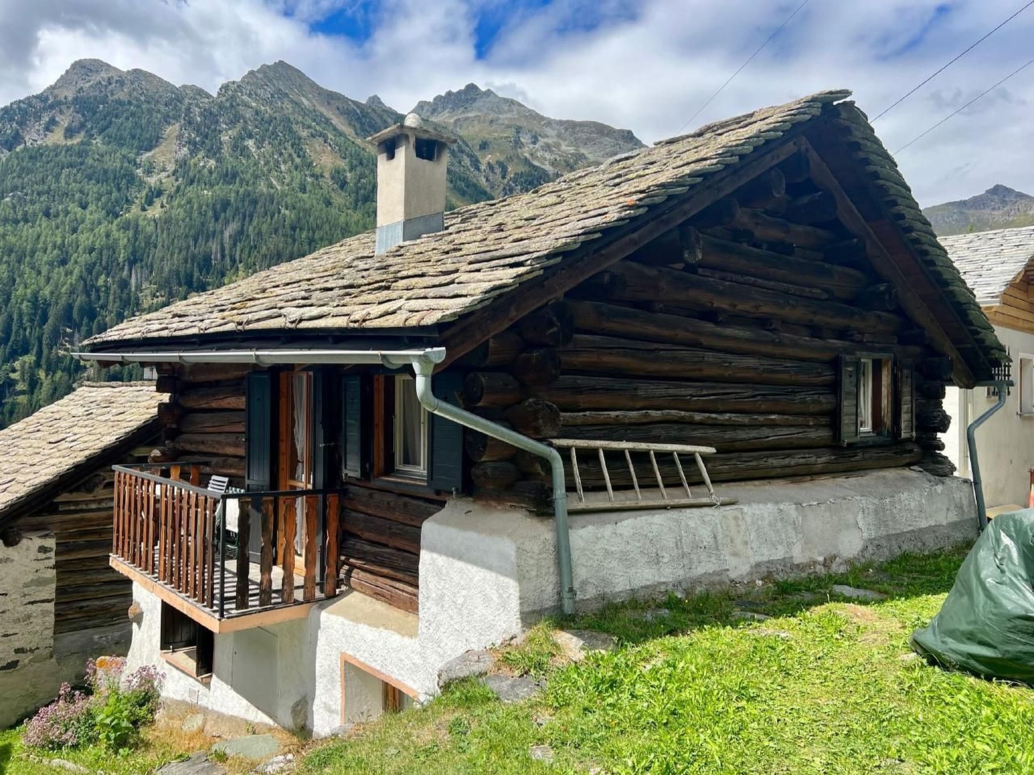 Idyllically situated, sun-drenched chalet (80m2) on a beautiful plateau 1495 m above sea level. Room for 4 people, 3 bedrooms (new mattresses) on the 1st floor, balcony, fully equipped kitchen made of Swiss stone pine with cosy sitting area, shower/WC, wood-burning stove with wood provided. Car park 50m from the house. Post bus stop "Casaccia Löbbia" 15 minutes on foot (ascent only 70 metres).