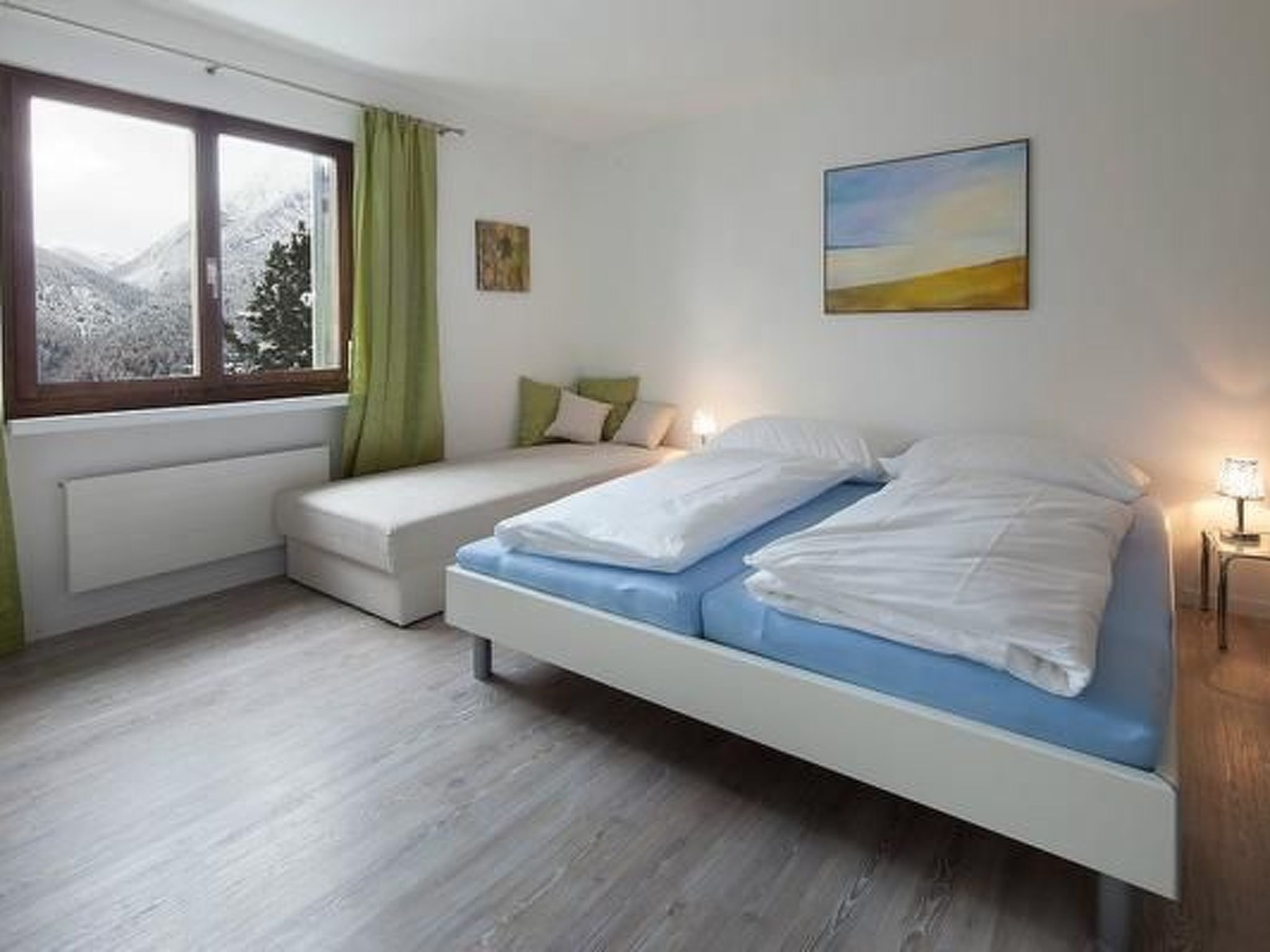 In a prime location, the flat offers easy access to the nearby attractions: Just a 7-minute walk to the valley station of the Motta Naluns mountain railway, the train station and about 10 minutes to the Bogn Engiadina. The surrounding area is rich in leisure opportunities, from the cultural wealth of the border triangle to the natural beauty of the Swiss National Park and luxurious day trip destinations such as Davos, St. Moritz and the UNESCO World Heritage Monastery of St. Johann in Val Müstair.