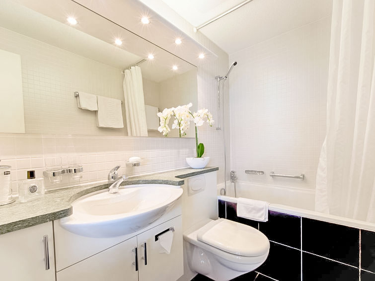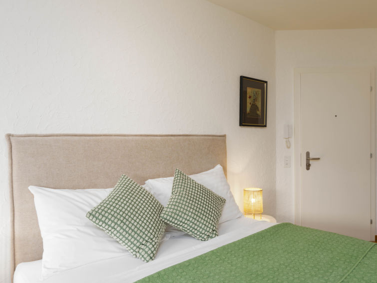 "Double Room Modern", 1-room apartment 35 m2, south facing position. Renovated: living/dining room with 1 double bed (1 x 180 cm, length 200 cm), satellite TV and radio. Kitchenette (oven, electric coffee machine, Capsules for coffee machine (Nespresso) extra). Bath/WC. Oil heating. Balcony, south facing position. Marvellous view of the lake, the mountains and the resort. Facilities: Internet (WiFi, free). Please note: non-smokers only, non-smoking house. Maximum 1 pet/ dog allowed. NL-00004960