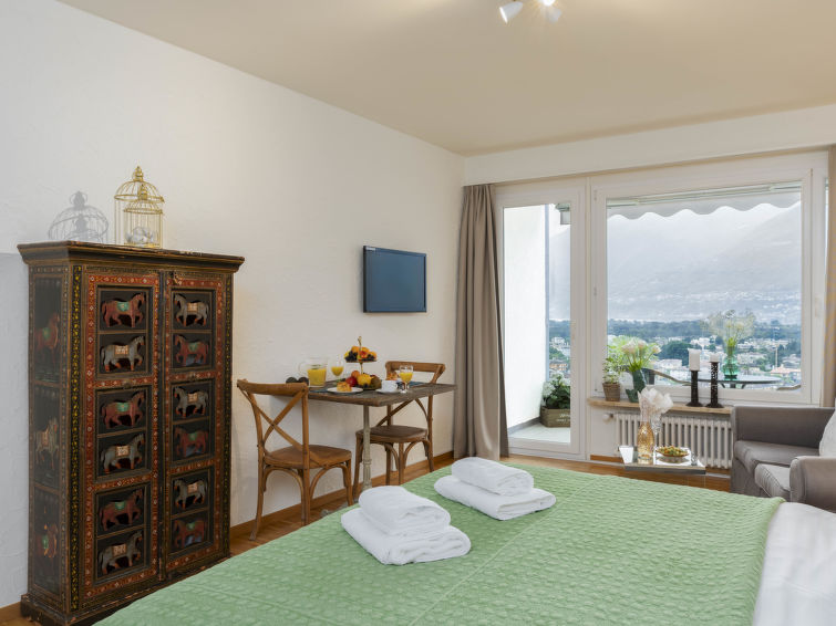 Ascona: Modern house "Palazzo Miralago", 4 storeys, built in 1960, renovated. 22 apartments in the property. Above Ascona 400 m from the centre of Ascona, in the district Lago Maggiore, in a quiet, sunny position on a slope, 400 m from the lake. In the house: reception, WiFi, lift, storage room for bicycles, central heating system, washing machine (extra), tumble dryer (for shared use, extra). Bread roll service possible. Parking (limited number of spaces, extra) on the premises, communal covered parking (extra). Parking space or garage only for small to medium-sized cars. Dimension: height 205 cm width 220 cm. Shop 400 m, grocery, supermarket 600 m, shopping centre 1.4 km, bakery, pedestrian zone 400 m, 10 minute walk to the centre, bus stop "Ascona Centro (Bus Nr. 1)" 400 m, railway station "SBB-CFF Locarno-Muralto" 4.7 km, sandy beach "Bagno Pubblico Ascona" 1.3 km, bathing lake "Lago Maggiore" 1.3 km, lake Lago Maggiore 500 m. Golf course (18 hole) 1 km, tennis 1 km. Nearby attractions: Madonana del Sasso, Orselina, Locarno-Ascona, Ronco sopra Ascona, Falconeria, Kamelienpark, Piazza Grande, Castelli di Bellinzona, Monte Verità, Ascona, Brissago Inseln. Well-known lakes can easily be reached: Lago Maggiore, Lago di Lugano, Lago di Como, Lago di Orta. Hiking paths: Monte Veritè, Ronco s. Ascona, Valle Maggia, VMonte Tamaro - Monte Lema, Monte Tamaro - Monte Lema. Please note: baby equipment on request (extra). Loading and unloading of baggage is possible at the holiday house. Additional accommodations can be booked. Property ref. CH6612.250.1-24 is situated on the same property. ATTENTION - limited number of garage spaces and limited number of outdoor parking spaces directly at the house - MUST reserve in advance.