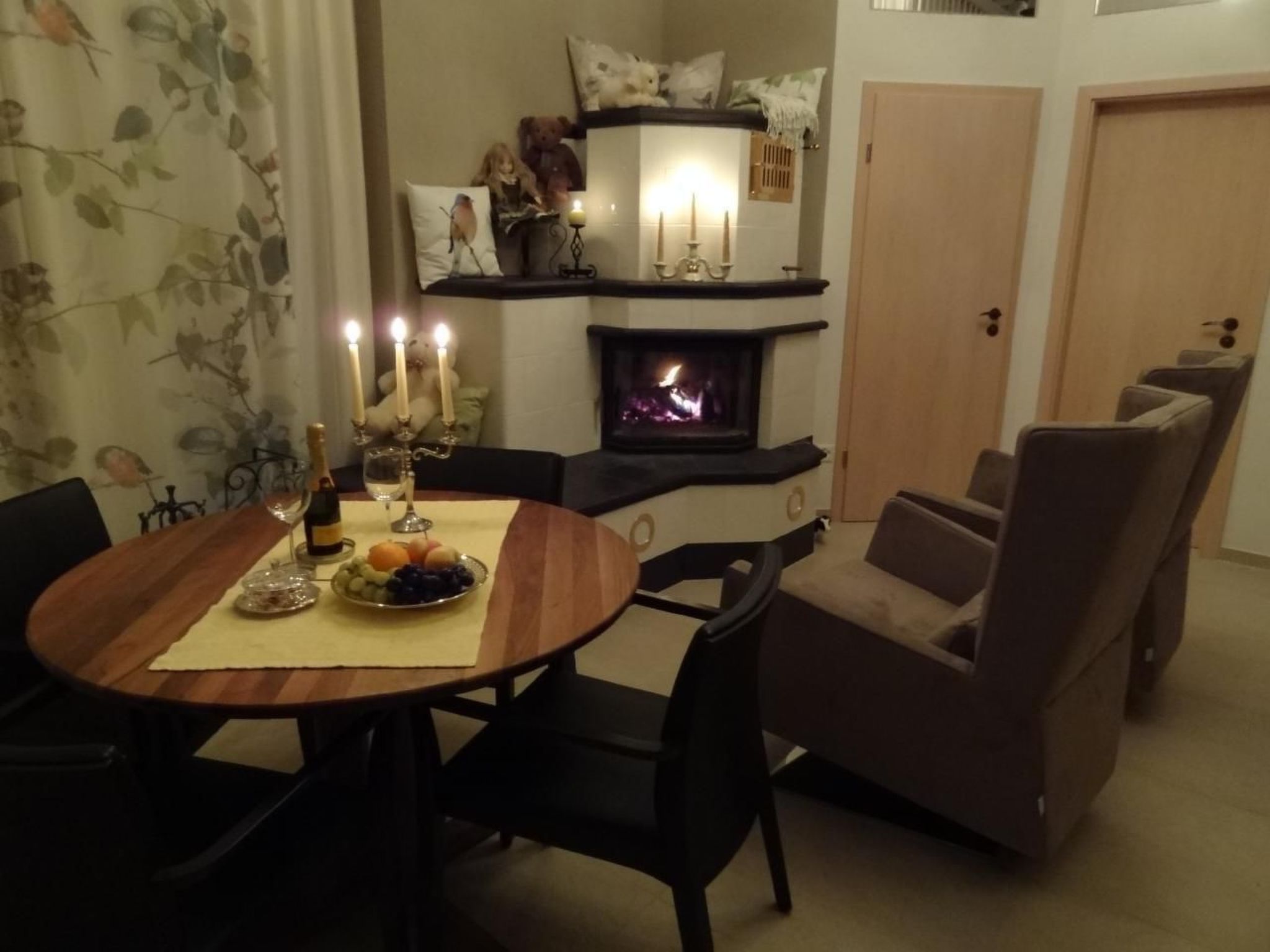 - optional: traditional tiled stove, newly built as a modern unit heater, with a large, clearly visible firebox in which you can also bake pizza, for example, and a stove pipe for the cherry stone bags, just like grandma used to make