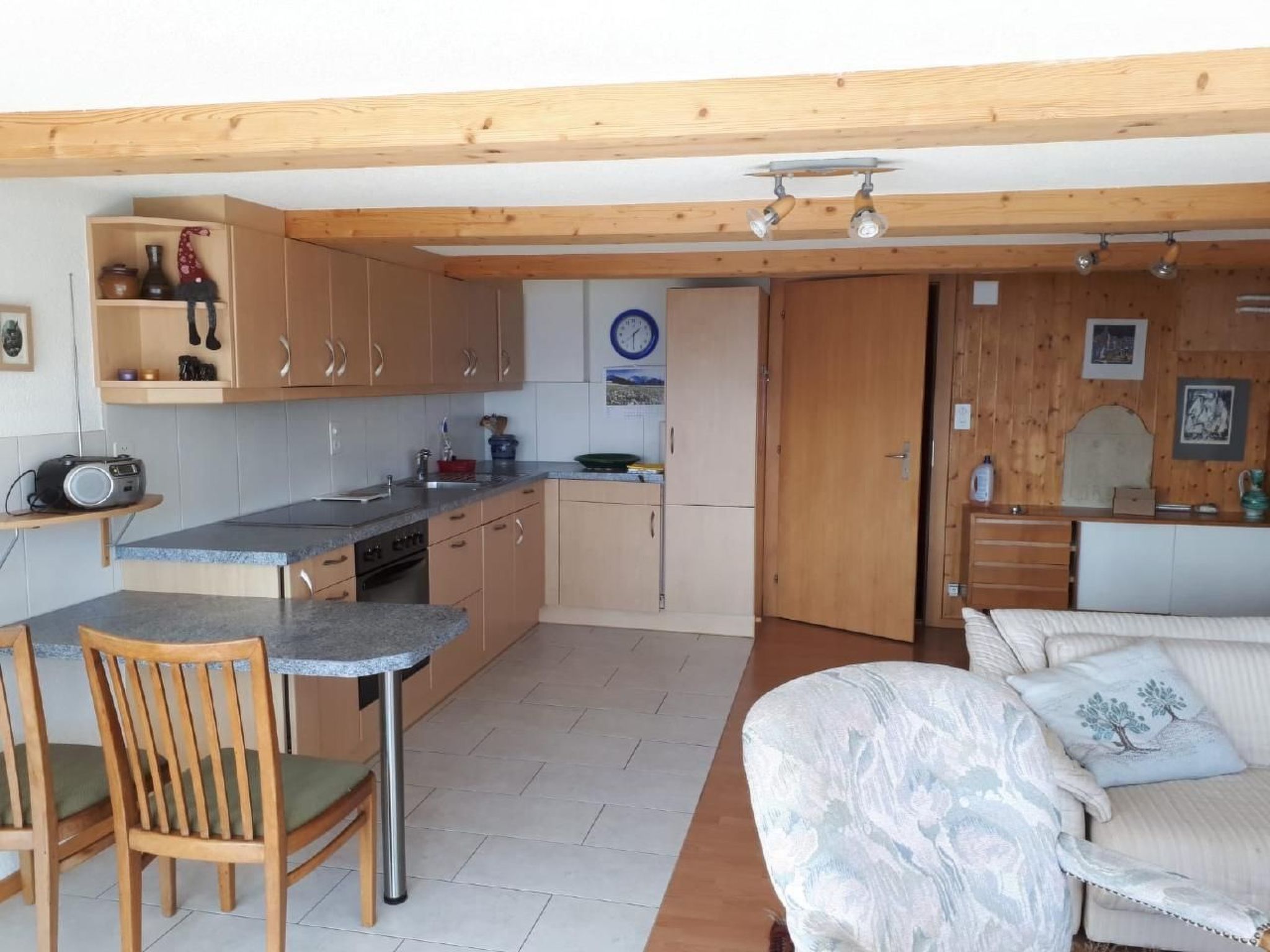 The outdoor area has a lovely balcony from which you can admire the Eiger, Mönch, Jungfrau and the beautiful Lake Thun. There is a free parking space right outside the front door, and the location in the centre of Beatenberg, in the immediate vicinity of the tourist office and Raiffeisenbank, makes this flat a perfect starting point for your explorations.