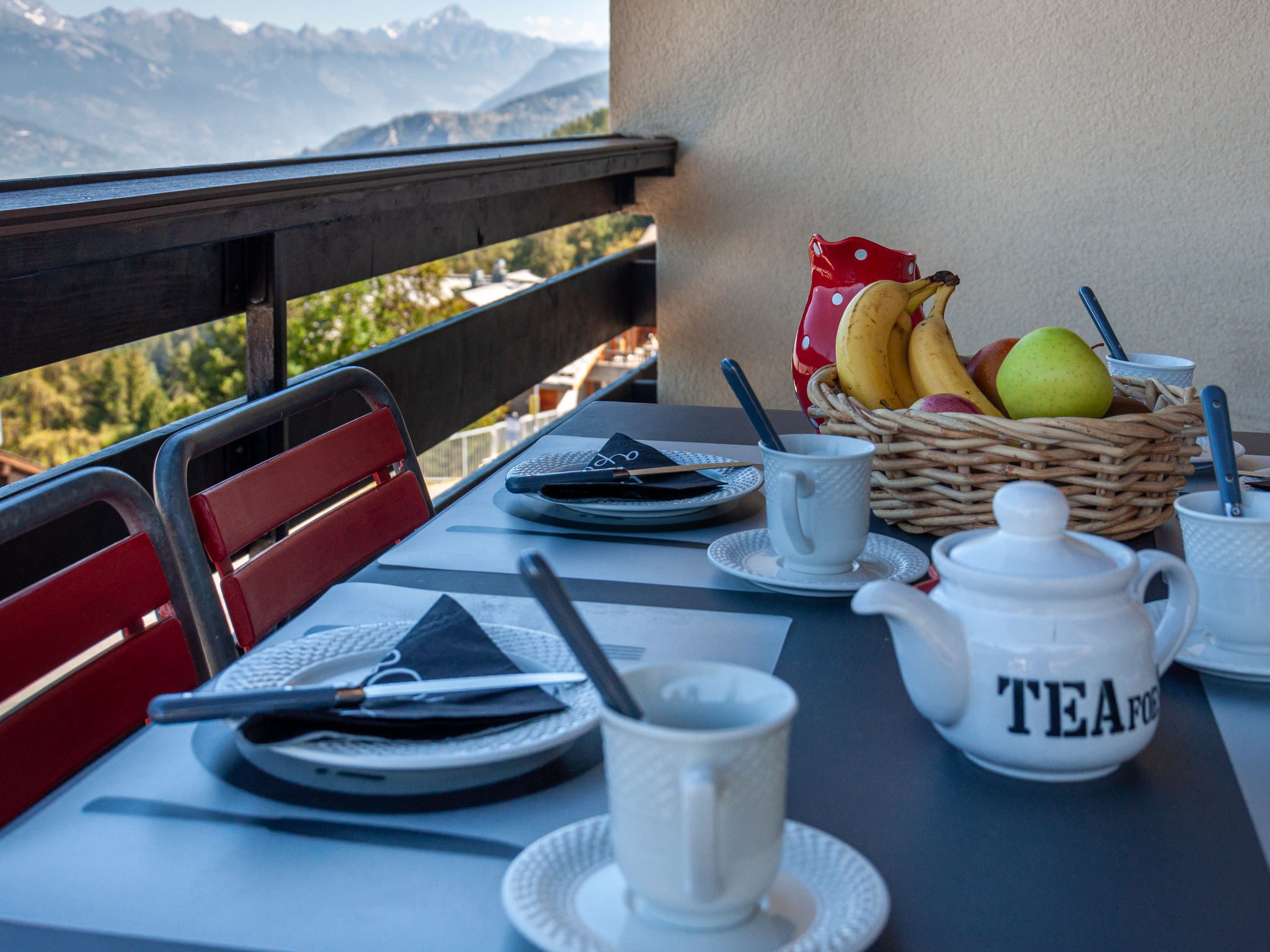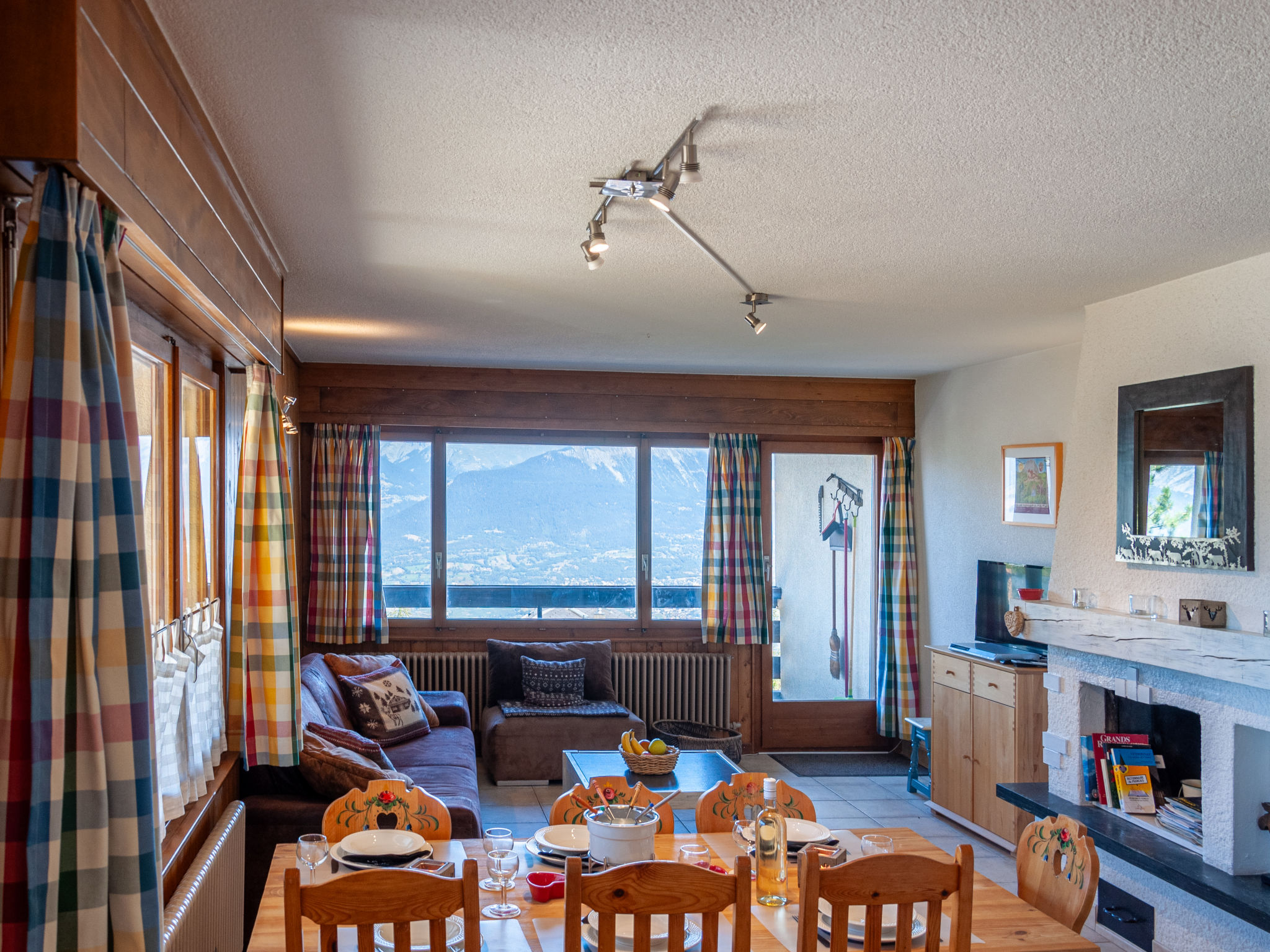 "Magrappé 344", 4-room apartment 90 m2 on 3rd floor. Comfortable and beautiful furnishings: living/dining room with open-hearth fireplace (only for decoration), cable TV and DVD. Exit to the balcony, north facing position and west facing position. 1 room with 1 x 2 bunk beds (90 cm, length 200 cm). 1 room with 1 double bed (2 x 90 cm, length 200 cm). 1 room with 1 french bed (140 cm, length 200 cm). Open kitchen (3 hot plates, oven, dishwasher, kettle, microwave, electric coffee machine, Capsules for coffee machine (Nespresso) extra, fondue Set (chinoise, cheese)). Bath/WC, sep. WC. Balcony furniture. Beautiful view of the mountains, the valley and the ski run. Facilities: hair dryer. Internet (WiFi, free). Please note: non-smokers only, no parking.