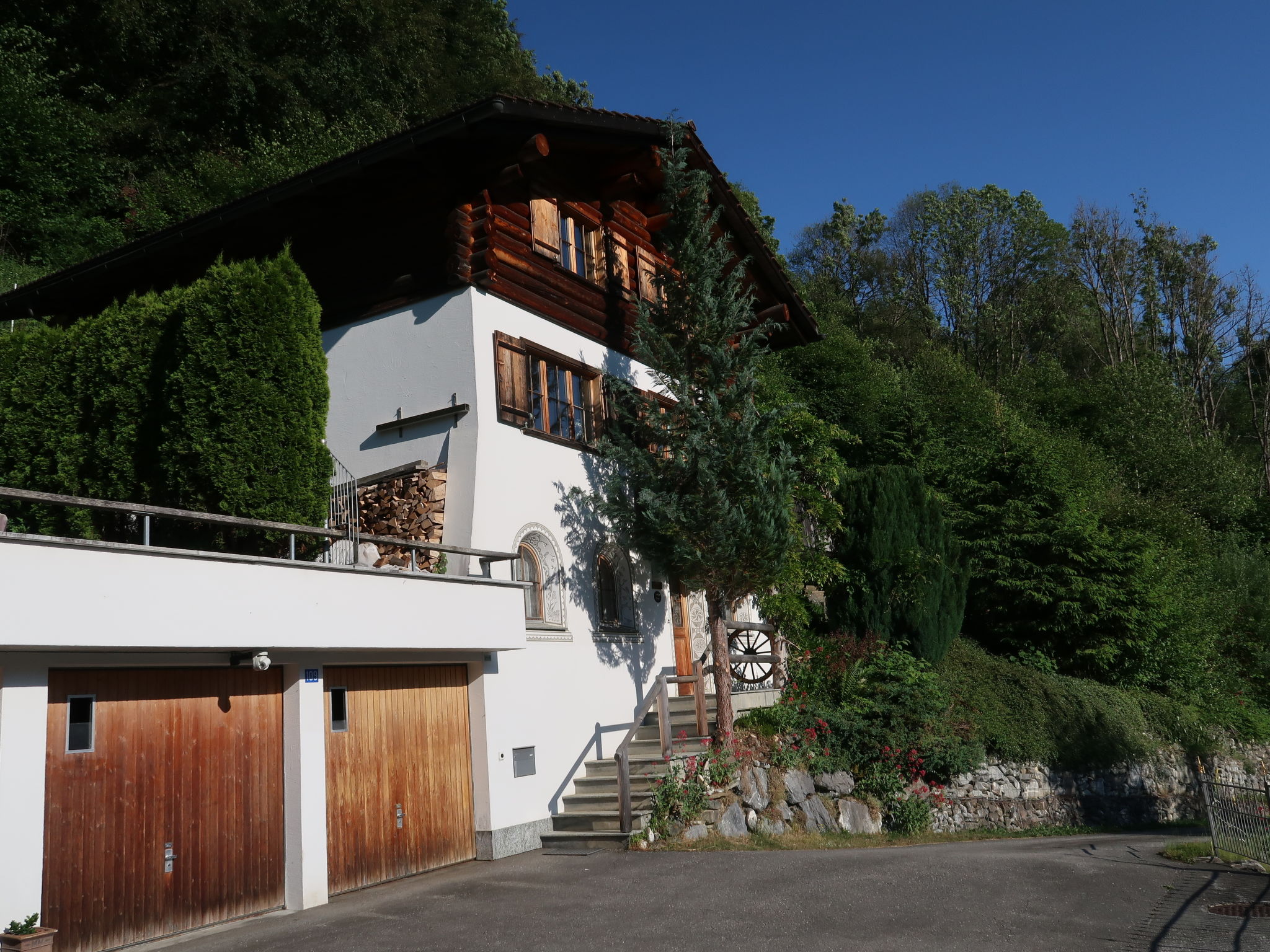 Mittellunden 20 km from Klosters: Cosy, rustic single-family house "Chalet Bergnest", 830 m a.s.l., 3 storeys, built in 1990, renovated in 2010. On the outskirts, 4 km from the centre of Schiers, in a quiet, sunny, elevated position on a slope. Private: property, garden. In the house: storage room for bicycles, storage room for skis, central heating system, washing machine, tumble dryer. Motor access to the house (mountain road). Parking at the house, single garage. Shop 4 km, grocery 4 km, supermarket 4 km, restaurant 4 km, bus stop 100 m. Cable car 20 km, skisport facilities 20 km. Well-known ski regions can easily be reached: Klosters/Davos 20 km, Fideriser Heuberge 20 km. Please note: car recommended.