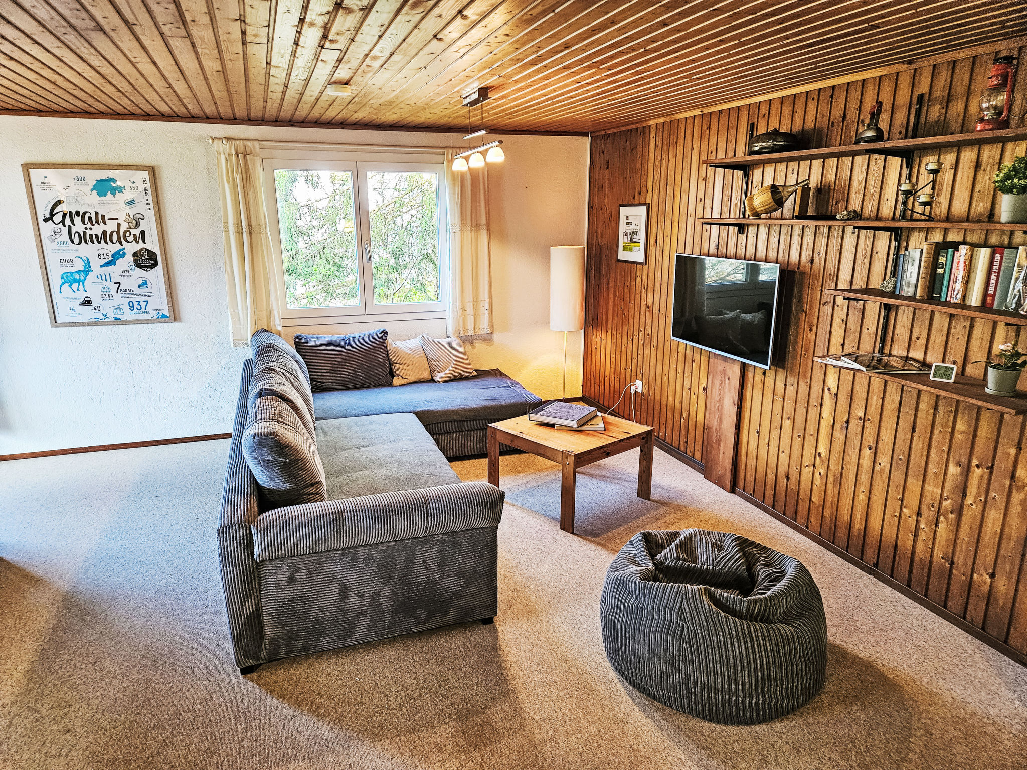 "Crap Grisch", 4-room apartment 80 m2 on 1st floor, south facing position. Partly renovated in 2023, cosy and wooden furniture furnishings: living/dining room with dining nook, satellite TV and hi-fi system. Exit to the balcony. 2 double bedrooms. 1 room with 1 bed. Open kitchen (4 hot plates, oven, dishwasher, electric coffee machine, Capsules for coffee machine (Nespresso) extra, raclette grill). Shower/WC. Electric heating, boiler (100 litres). Balcony, terrace, garden. Terrace furniture. Panoramic view. Facilities: washing machine, iron, children's high chair, baby cot. Internet (WiFi, free). Parking, garage at the house. Please note: non-smokers only. Private entrance. Baby bed: 70 x 140cm, bring your own bed linen. 565-885.81.246.158