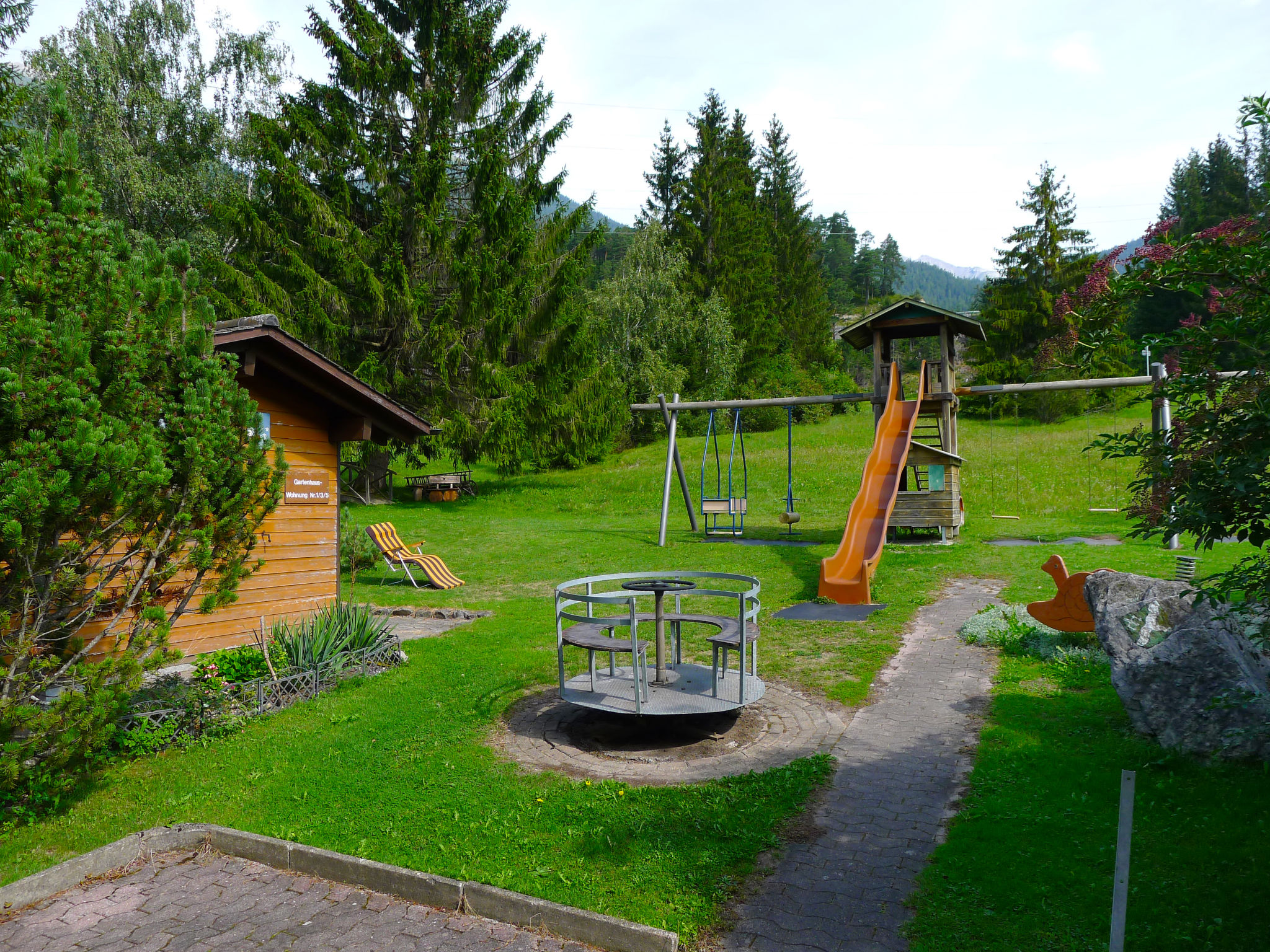 Surava 4 km from Tiefencastel: 942 meters above sea level In the heart of Graubünden, in the middle of Ela Park, on the Bernina Express line between the small, cozy mountain villages of Surava and Alvaneu Bad. With a view of the Albula Valley. A holiday home lies surrounded by the attractions of the Ela park on the sunny hill between the two mountain villages. Nationwide well-known sights known from the Tagesschau like Landwasserviadukt, the castle ruin Belfort, from the living room visible Crap Furo, (Monumental rock in the center of Graubünden), the Schobstobel waterfall and the thermal and sulfur bath with Golf club in Alvaneu are just some of the wonderful sights, which are reachable from this house by foot even by poor hikers. It is a little crowded paradise for hikers and nature lovers with medium and high mountain hikes from the house. Many of the sights are also accessible by car and public transport. Child friendly, simple chalet "Fricktalerhuus", 3 storeys, surrounded by trees and meadows. Outside the resort, 1 km from the centre, in a quiet, sunny position on a slope, 11 km from the skiing area, in the countryside. For shared use: large garden, lawn for sunbathing. Patio, garden furniture, barbecue, barbecue house, children's playground. In the house: central heating system. Motor access to the house. Parking at the house. Grocery 4 km, restaurant 500 m, bus stop 50 m, railway station "Tiefencastel" 4 km, thermal baths "Alvenau Bad" 3 km. Golf course (18 hole) 3 km, walking paths from the house 50 m, cable car 15 km, ski lift 11 km, skisport facilities 11 km, slopes 11 km, ski rental 11 km, ski school 11 km, cross country ski track, ice rink 500 m. Nearby attractions: Chur, Bahnmuseum Bergün. Well-known ski regions can easily be reached: Lenzerheide-Arosa 11 km, Savognin 13 km, Bergün 13 km. Hiking paths: Parc Ela. Please note: car recommended. Suitable for families. Additional accommodations can be booked. Property ref. CH7472.100 is situated on the same property. Perfect starting point for hiking, biking or enjoying nature and peace! The children's playground as well the large garden grill round off the idyllic holiday feeling for the whole family.
