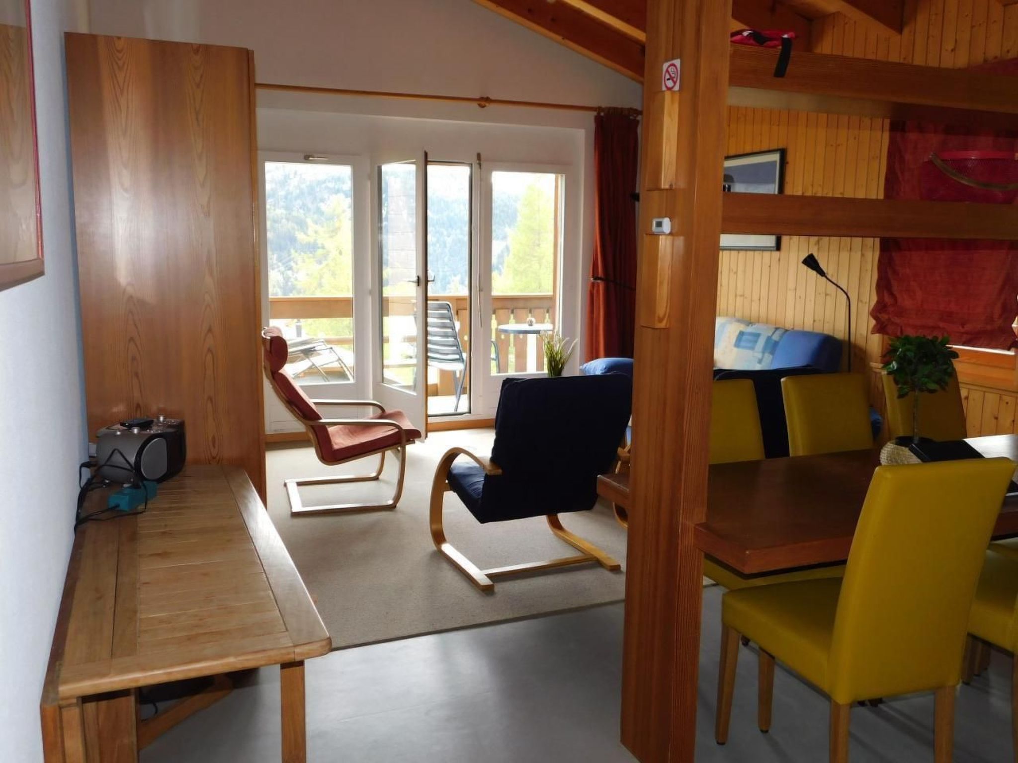 The holiday flat on the top floor is located above the centre of Bellwald. It offers space for a maximum of 8 people. The development includes a car park with a reserved parking space for the flat, which is included in the rent.