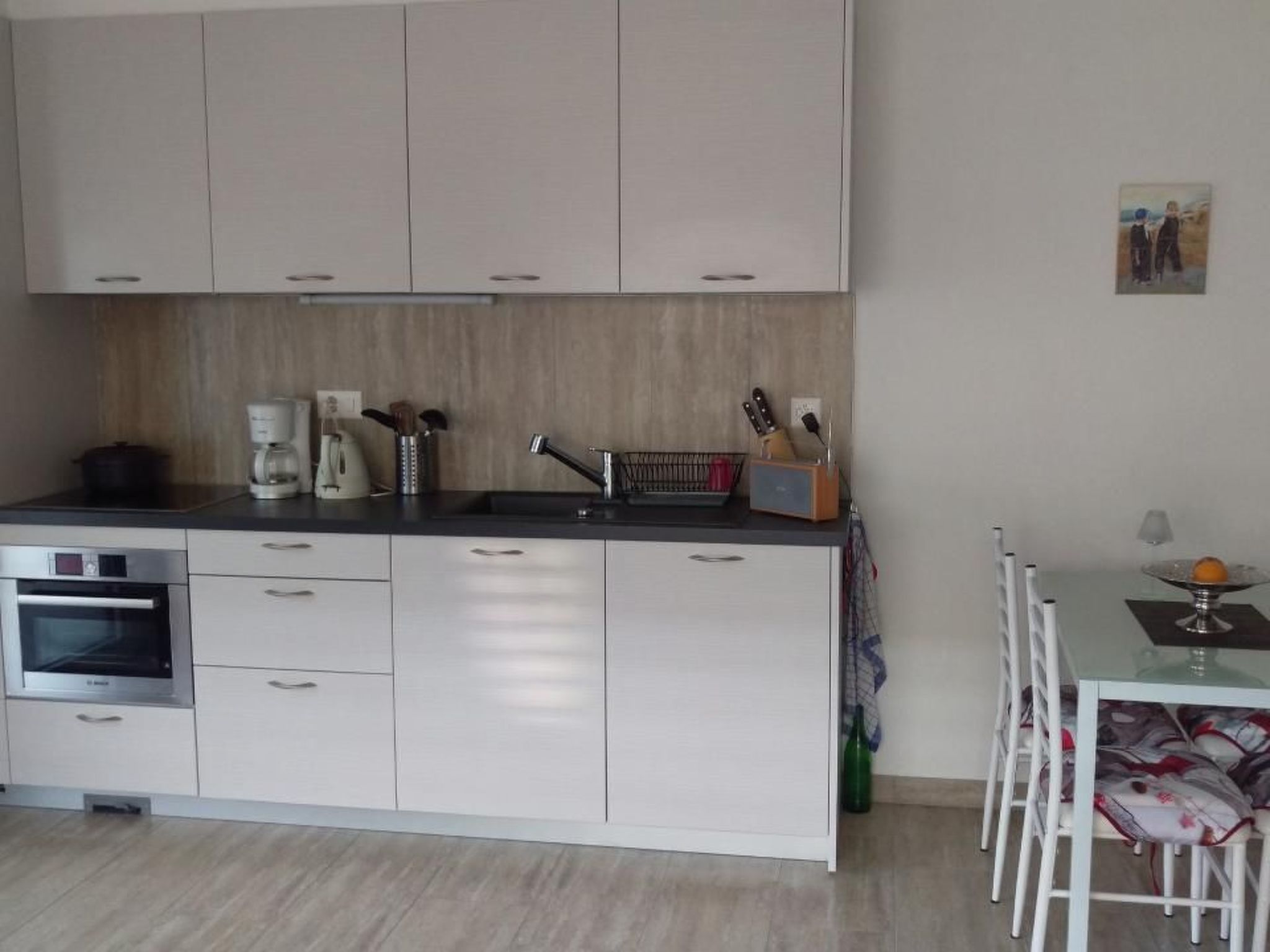 2-room flat of 45m2, for up to 4 people, independent entrance, free parking, WC/shower, bath and bed linen included, fully equipped kitchen with oven and ceramic hob, large fridge, kettle, plates, glasses and services, free coffee and tea, flat screen TV 250 channels, free high speed internet, mountain and vineyard views, large sunny terrace with bio-climatic pergola, barbecue, electric awning, simple breakfast on request