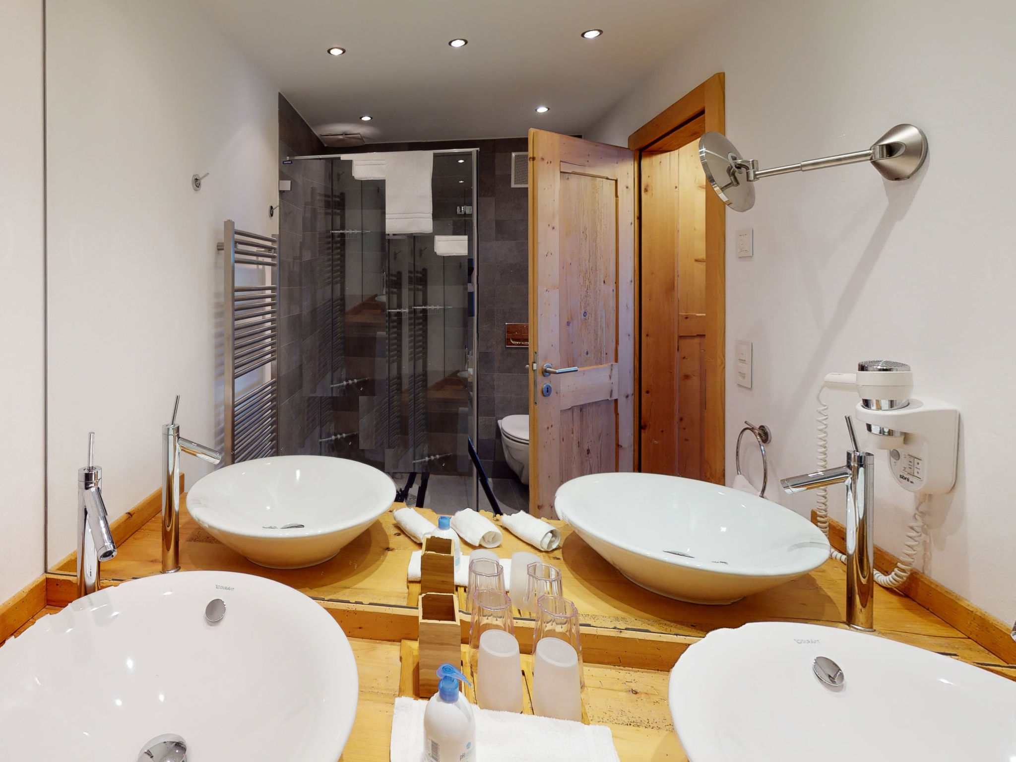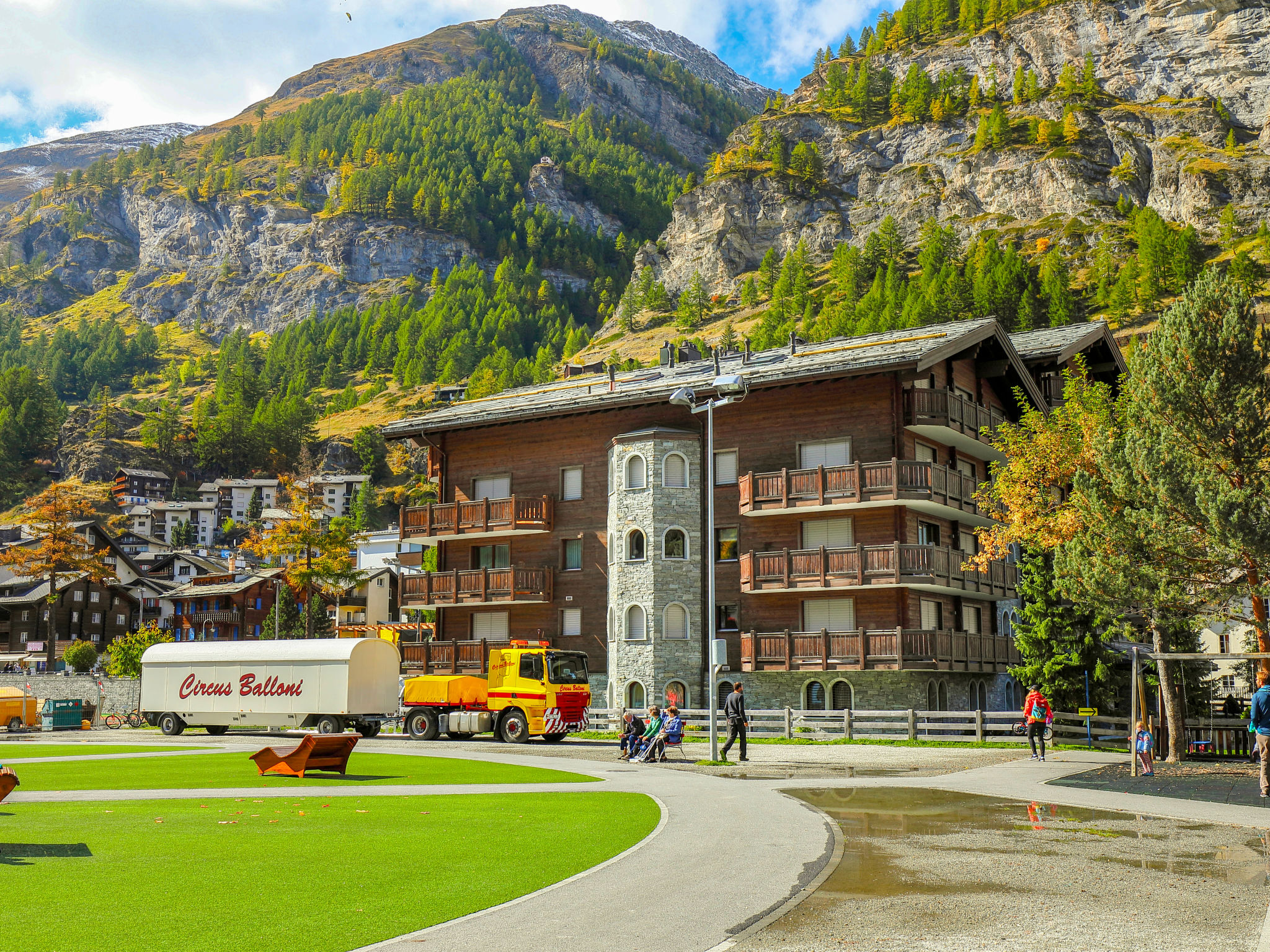 The use of the wellness area of the house is accessible by an underground tunnel luxurious apartment house "Whymper", built in 2007. In the centre of Zermatt, in a sunny position, south facing position. In the house: sauna, hot tub, lift, storage room for skis, central heating system. Supermarket 30 m, restaurant, bakery, café 100 m, bicycle rental 100 m, 2 minute walk to the centre, bus stop "Bahnhof" 190 m, railway station "Bahnhof Zermatt" 100 m. Mountain railway, ski rental 50 m, ski bus stop 190 m, ski school, children's ski school 270 m.