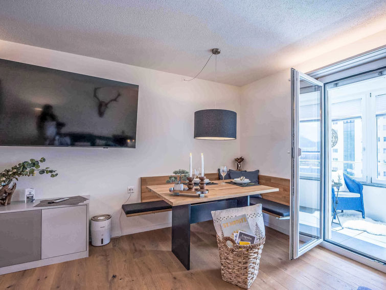 "Chesa Ova Cotschna 802", 1-room apartment 32 m2 on 8th floor, west facing position. Bright, renovated in 2024, beautiful and modern furnishings: open living/sleeping room with 2 fold-away beds (90 cm, length 200 cm), dining nook and TV (flat screen). Exit to the loggia. Small kitchen (oven, dishwasher, 4 ceramic glass hob hotplates, toaster, kettle, electric coffee machine, Capsules for coffee machine (Nespresso) extra, steamer, raclette grill, fondue Set (cheese)). Shower/WC. Heating. Beautiful view of the mountains and the countryside. Facilities: iron, hair dryer. Internet (WiFi, free). Garage space n 24 (1 car) at 300 m, height 205 cm, width 220 cm. Please note: non-smokers only, non-smoking house. Maximum 1 pet/ dog allowed.