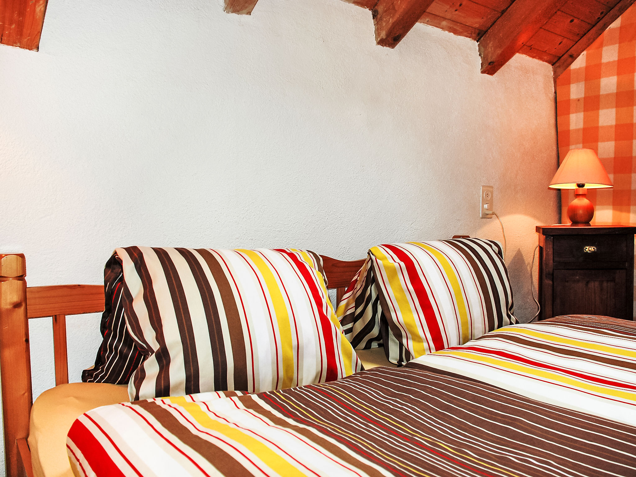 "Strecce 1", 2-room apartment 60 m2. With sloping ceilings, practical and cosy furnishings: living/dining room with sloping ceilings with 1 sofabed (140 cm, length 200 cm), satellite TV, DVD and electric heating. Exit to the garden. 1 double bedroom with 1 french bed (1 x 160 cm, length 200 cm). With sloping ceilings, open kitchen (4 hot plates, oven). Shower/WC. Wooden floors. Terrace 10 m2, patio 12 m2. Balcony furniture, barbecue (portable), deck chairs (4). Side view of the mountains and the valley. Please note: non-smokers only. NL-00004420