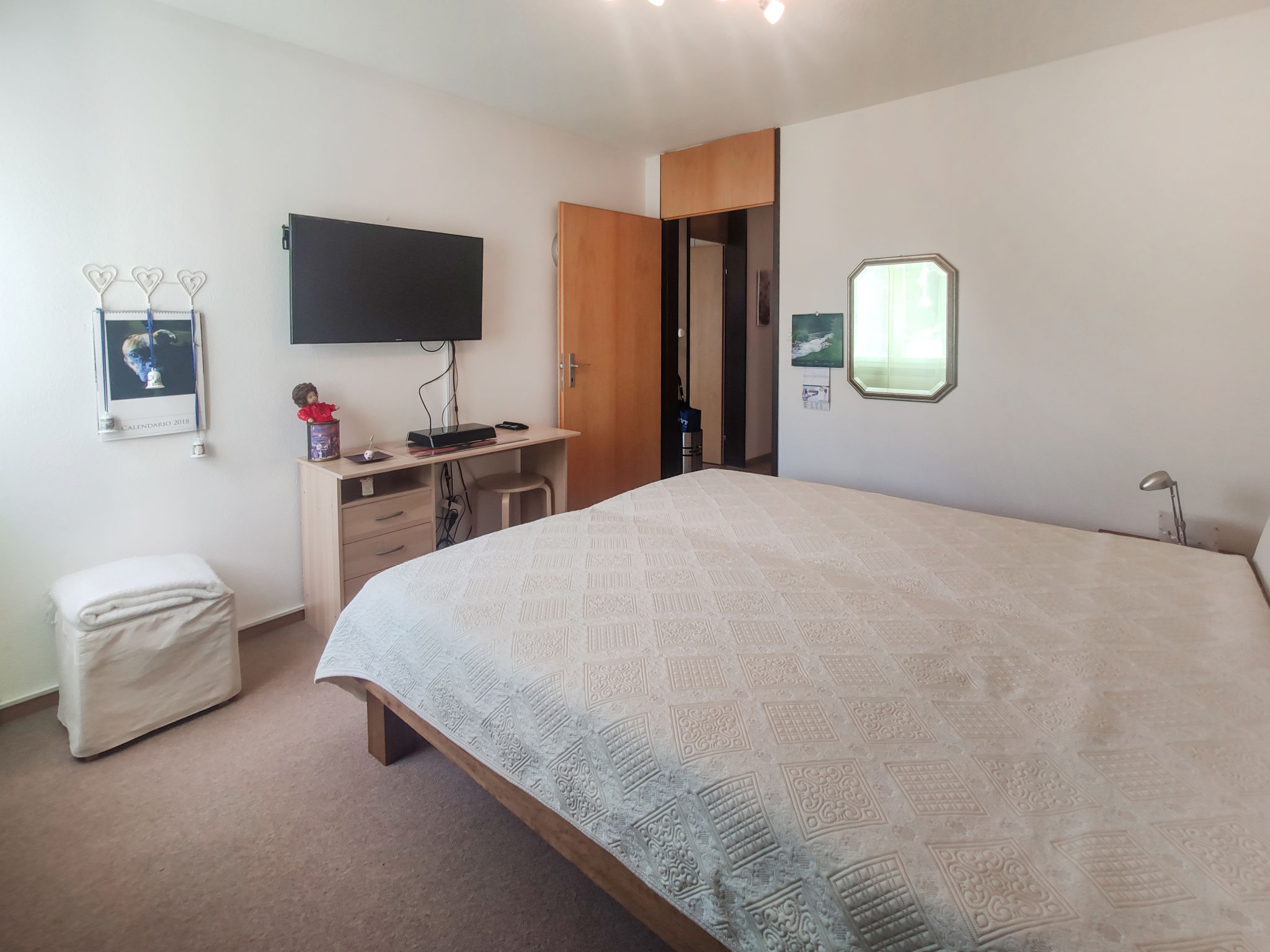 "Allod Park Haus C 207", 3-room apartment on 2nd floor, north-west facing position. Spacious and bright, renovated, modern and tasteful furnishings: living/dining room with cable TV and flat screen. Exit to the balcony, west facing position. Large, 1 double bedroom with 1 french bed (2 x 90 cm, length 200 cm), cable TV and flat screen. 1 children's room with 1 sofabed (90 cm, length 200 cm), 1 double bed (2 x 90 cm, length 200 cm), cable TV and flat screen. Large kitchen (oven, dishwasher, 4 ceramic glass hob hotplates, kettle, microwave, electric coffee machine, Capsules for coffee machine (Nespresso) extra, fondue Set (cheese)). Shower/WC, double hand-basin. Wooden floors. Balcony furniture. Side view of the mountains and the city. Facilities: Internet (WiFi, free). Parking (extra) at the house. Please note: apartment street side. Non-smokers only. 14944