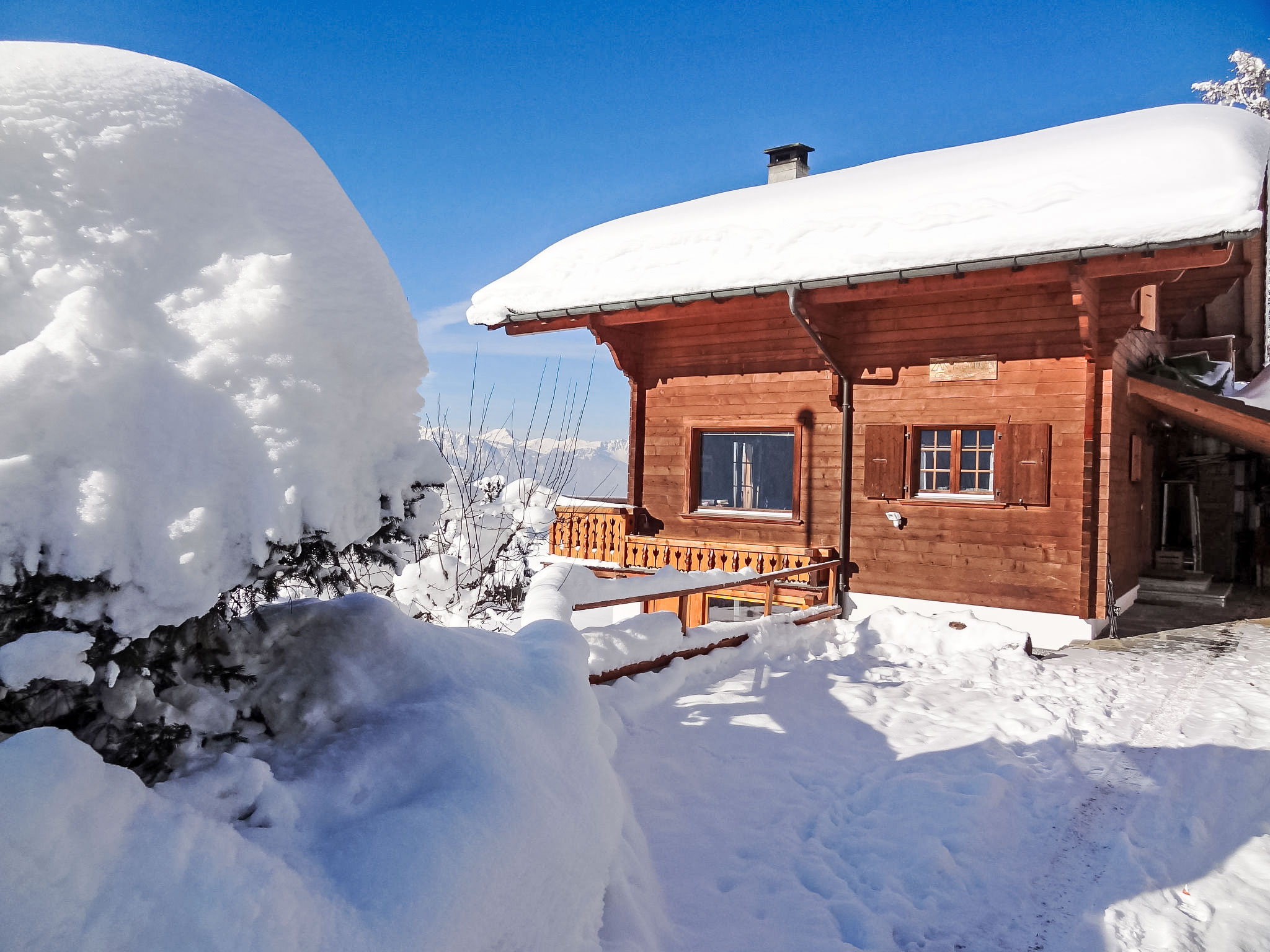 "Chalet Zan-Fleuron", 5-room chalet 150 m2 on 3 levels, south facing position. Comfortable and beautiful furnishings: large living/dining room with open-hearth fireplace, dining table and TV (flat screen), CD-player and DVD. Exit to the balcony, south facing position and west facing position. Open kitchen (oven, dishwasher, 4 ceramic glass hob hotplates, microwave, electric coffee machine, Capsules for coffee machine (Nespresso) extra, raclette grill, fondue Set (cheese)). Sep. WC. Electric heating. On the lower ground floor: large living/sleeping room with 1 pull-out bed (2 x 90 cm), hi-fi system. Exit to the terrace, south facing position. Shower/WC. Electric heating. Upper floor: 1 room with 2 beds (90 cm). Exit to the balcony, south facing position. 1 room with 1 double bed (2 x 90 cm). Exit to the balcony, south facing position. 1 small room 8 m2, without wardrobe with 2 beds (90 cm). Bath/WC. Electric heating. Large balcony 15 m2, south facing position and west facing position, small balcony 5 m2, south facing position, large terrace 25 m2. Terrace furniture. Very beautiful panoramic view of the mountains and the valley. Facilities: washing machine, dryer. Internet (WiFi, free). Parking (roofed). Please note: non-smoking house.