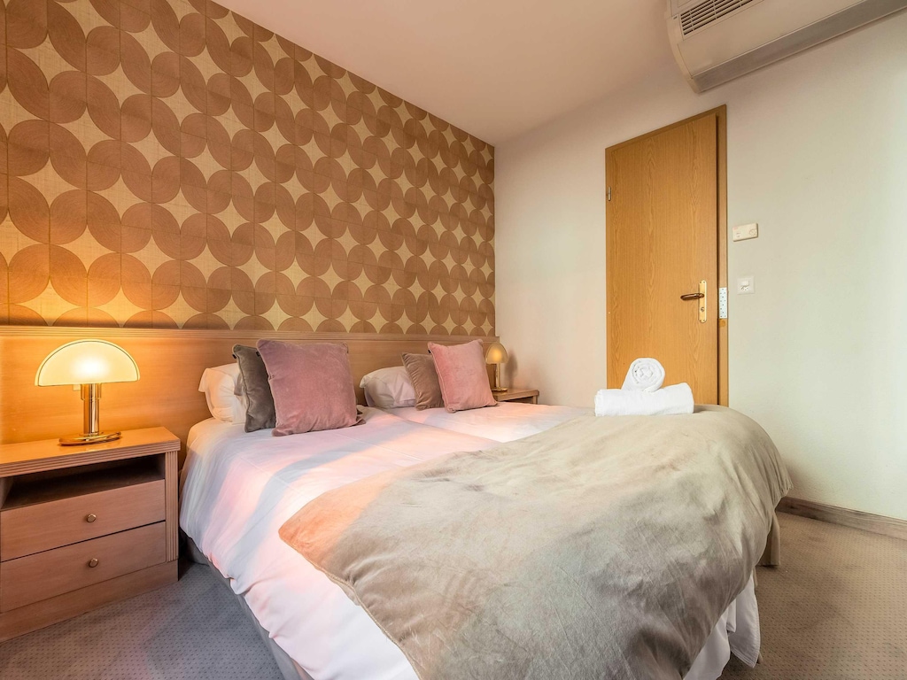 On the 4th floor: (Living room(double sofa bed, TV(flatscreen)), Kitchen(dining table, hob, electric kettle, coffee machine, microwave, fridge, electric hot plates, dishes and cutlery, Cooking basics, Wine glasses), bedroom(single bed, single bed, iron, Towels incl., Sheets incl.), bathroom(shower, toilet, hairdryer, shampoo, body soap, hot water))