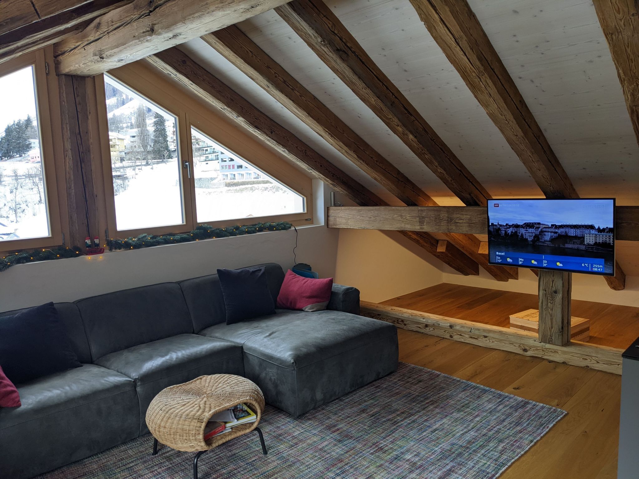 The flat is centrally located, directly below the Hotel Belvedere and the Bogn Engiadina (thermal baths).