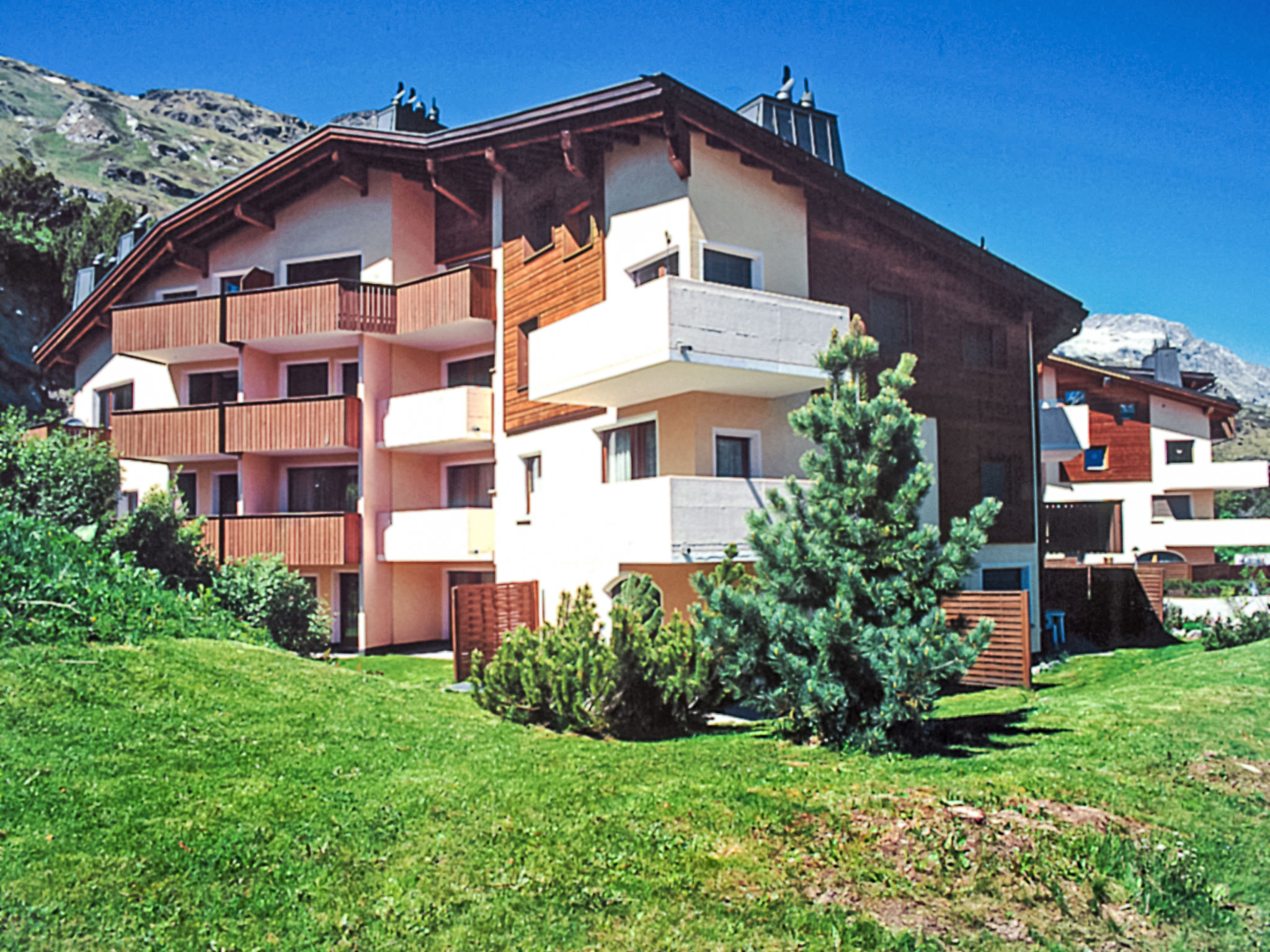 Maloja 16 km from St.Moritz: Apartment block "Pra d'Sura". On the outskirts, 400 m from the centre of Maloja, in a sunny position, 800 m from the lake, on a main road, south facing position. In the house: lounge, lift, storage room for skis, central heating system, washing machine, tumble dryer (for shared use, extra). Communal covered parking at the house. Shop 500 m, grocery 400 m, restaurant 50 m, bus stop 400 m. Walking paths from the house 100 m, cable car 8 km, ski lift 1 km, ski rental 600 m, ski bus stop 400 m, ski school, children's ski school 800 m, cross country ski track 200 m, ice rink 400 m. Well-known ski regions can easily be reached: Corvatsch - Furtschellas 9 km, Corviglia 16 km. Well-known lakes can easily be reached: Silser See 500 m, St. Moritz See 16 km. Hiking paths: Cavloc-Fextal, Lunghin See, Bergell. Please note: car recommended. Loading and unloading of baggage is possible at the holiday house.