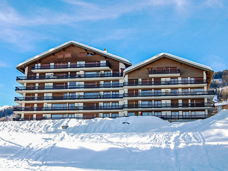 Residence "Les Muverans I + II". In a quiet position. In the house: lift, storage room for skis, central heating system, washing machine, tumble dryer (for shared use, extra). Motor access to the house. Parking (limited number of spaces). Supermarket 250 m, restaurant 200 m, bus stop "Haute-Nendaz, station/poste" 600 m, railway station "Sion" 16.3 km, outdoor swimming pool 550 m. Golf course (18 hole) 16 km, tennis 500 m, gondola lift 700 m, ski bus stop 250 m. Well-known ski regions can easily be reached: Nendaz-Tracouet 1.2 km. Please note: Additional accommodations can be booked.