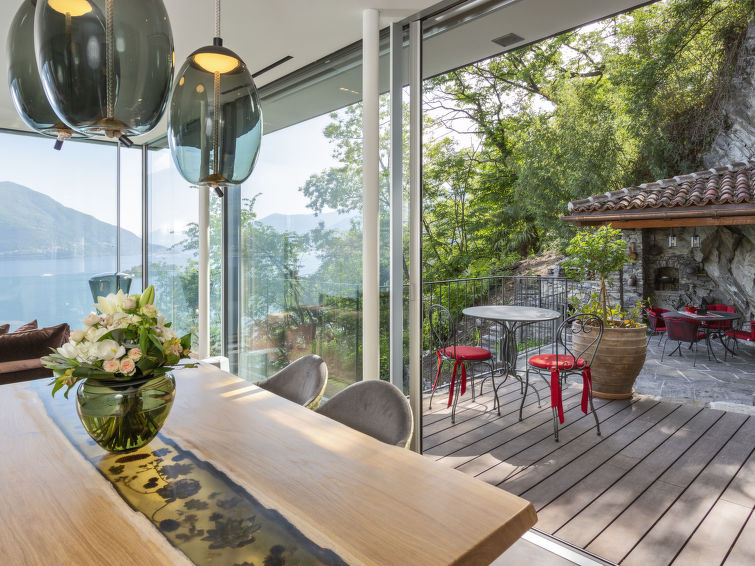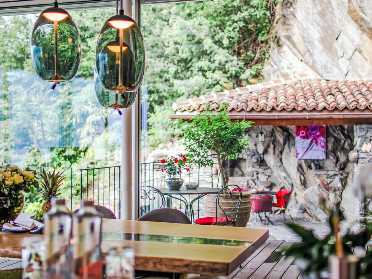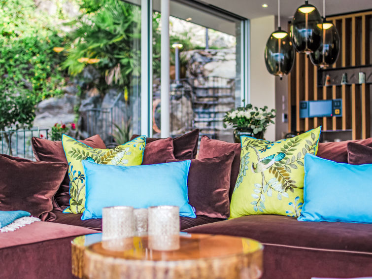 Ronco sopra Ascona 4 km from Ascona: Enjoy the "dolce far niente" with a breathtaking view of Lake Maggiore and the Unesco cultural heritage - the Brissago Islands! La Gioia, the oasis of well-being for all the senses. Large, very beautiful villa "La Gioia", detached, renovated in 2022, surrounded by trees. In a quiet, sunny, elevated position residential area (villas), 3 km from the lake, in the countryside, south facing position. For shared use: beautiful garden to relax, swimming pool angular heated (3 x 4 m, depth 160 - 160 cm, seasonal availability: 01.May. - 30.Oct.) with internal staircase and shutter cover. Outdoor shower, poolhouse with fridge and WC, patio, pergola, terrace, barbecue. In the house: internet access, in summer, use of sauna is included, in winter, use of sauna is included, lift. Linen change weekly (suppl. charge extra). Towel change weekly (suppl. charge extra). Room cleaning on request (extra). House maid on request (extra). Bread roll service, beverage service and breakfast on request. Pre-arrival grocery service. Airport transfer (extra). Parking at the house at 60 m. Bus stop "Gruppaldo, Bivio" 800 m, railway station "Locarno Muralto" 6.5 km, thermal baths "Termali Salini & Spa Locarno" 6.7 km. Golf course (18 hole) 5 km. Nearby attractions: Ascona, Piazza Grande Locarno, Isole di Brissago, Mercato Cannobio IT. Well-known lakes can easily be reached: Lago Maggiore, Lago di Lugano, Lago di Como. Hiking paths: Cardada, Vallemaggia, Valle Verzasca, Centovalli. Please note: car recommended. Not suitable for children under 14 years. On request: airport transfer to the holiday accommodation. The owner does not accept any groups. The owner does not accept any youth groups. 24hr guard. Owner lives in separate semi-detached house. Additional accommodations can be booked. Property ref. CH6622.66 is situated on the same property.
