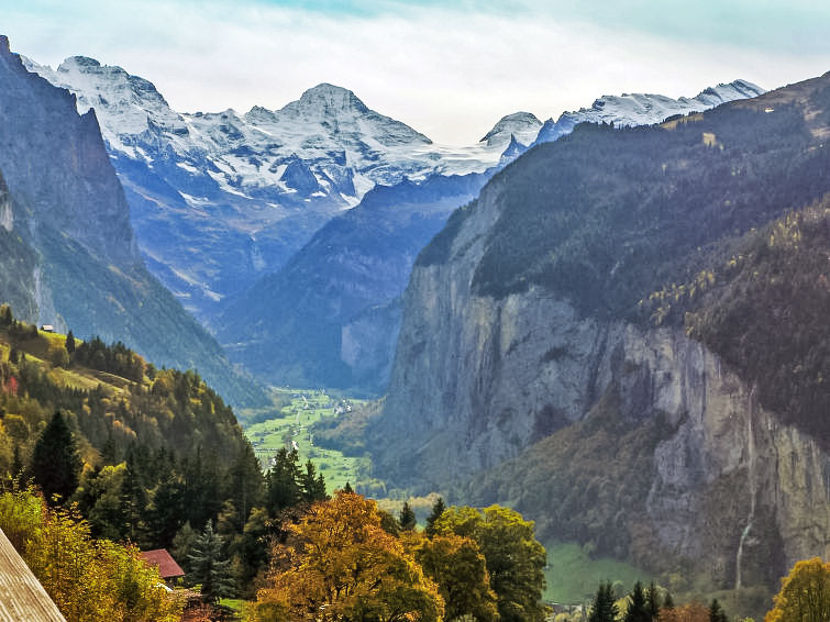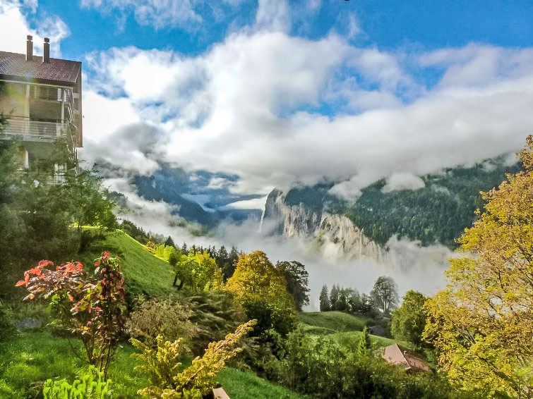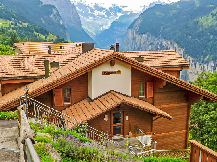Apartment block "Panorama", built in 2003. Below Wengen, 800 m from the centre, in a quiet, sunny position on a slope. In the house: central heating system. Pre-arrival grocery service. Motor access to 30 m from the house. Stepped path (20 steps) to the house. Shop, supermarket 800 m, restaurant 500 m, bar 800 m, 15 minute walk to the centre, bus stop "Lauterbrunnen (by train)" 3.8 km, railway station "Wengen" 800 m, outdoor swimming pool 1.3 km. Cable car, skisport facilities 800 m, children's playground 500 m. Well-known lakes can easily be reached: Thunersee 13 km, Brienzersee 13 km. Please note: car-free holiday complex. Arrival via mountain railway. Additional accommodations can be booked. Arrival is only possible by train from Lauterbrunnen – 14 minutes driving time.