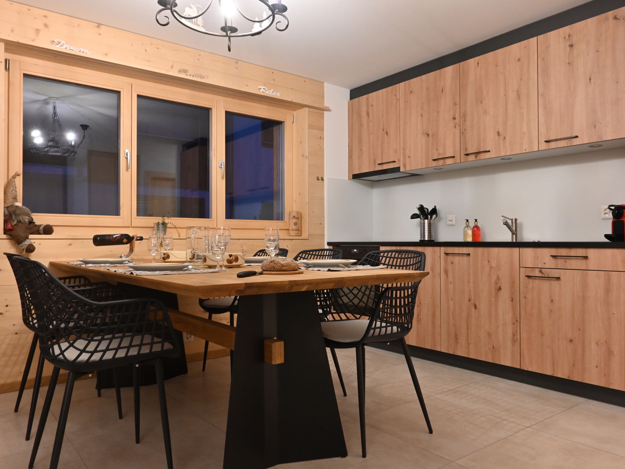 "Clos de Morthey A R 01", 3-room apartment 82 m2, on the ground floor, south facing position. Spacious, very beautiful and modern furnishings: living/dining room with 1 sofabed (140 cm, length 200 cm), Scandinavian wood stove and cable TV. Exit to the terrace, south facing position. 1 room with 1 double bed (160 cm, length 200 cm). 1 room with 1 double bed (160 cm, length 200 cm). Kitchenette (4 ceramic glass hob hotplates, toaster, kettle, microwave, electric coffee machine, Capsules for coffee machine (Nespresso) extra, raclette grill, fondue Set (chinoise, cheese)). Bath/WC, shower/WC. Large terrace 36 m2, south facing position, lawn. Terrace furniture, barbecue, deck chairs. View of the mountains. Facilities: hair dryer. Internet (WiFi, free). Parking space n R 01 (1 car), garage space n R 01 (1 car). Please note: non-smokers only.