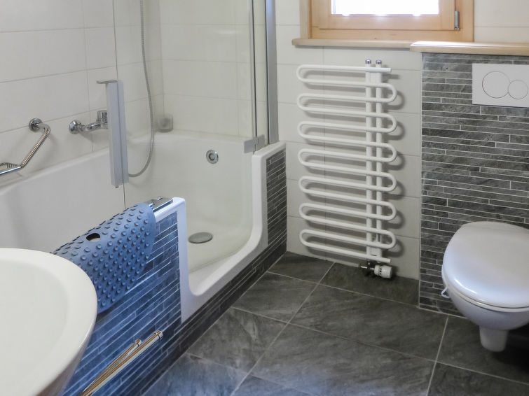 "Chalet L'Aube", 4-room apartment 100 m2 on 2 levels on 1st floor, south-east facing position. Spacious, tasteful and wooden furniture furnishings: living/dining room with open-hearth fireplace, satellite TV and DVD. Exit to the balcony. Kitchen (oven, dishwasher, 4 ceramic glass hob hotplates, kettle, electric coffee machine, Capsules for coffee machine (Dolce Gusto) extra, fondue Set (cheese)). Exit to the balcony. Sep. WC. Upper floor: 1 room with 2 beds (90 cm, length 200 cm). 1 room with 2 beds (90 cm, length 200 cm). Exit to the balcony. 1 room with 2 beds (90 cm, length 200 cm). Exit to the balcony. Bath/shower/WC. Small balcony, large balcony. Balcony furniture, barbecue. Marvellous view of the mountains. Facilities: washing machine, hair dryer. Internet (WiFi, free). Please note: non-smokers only.