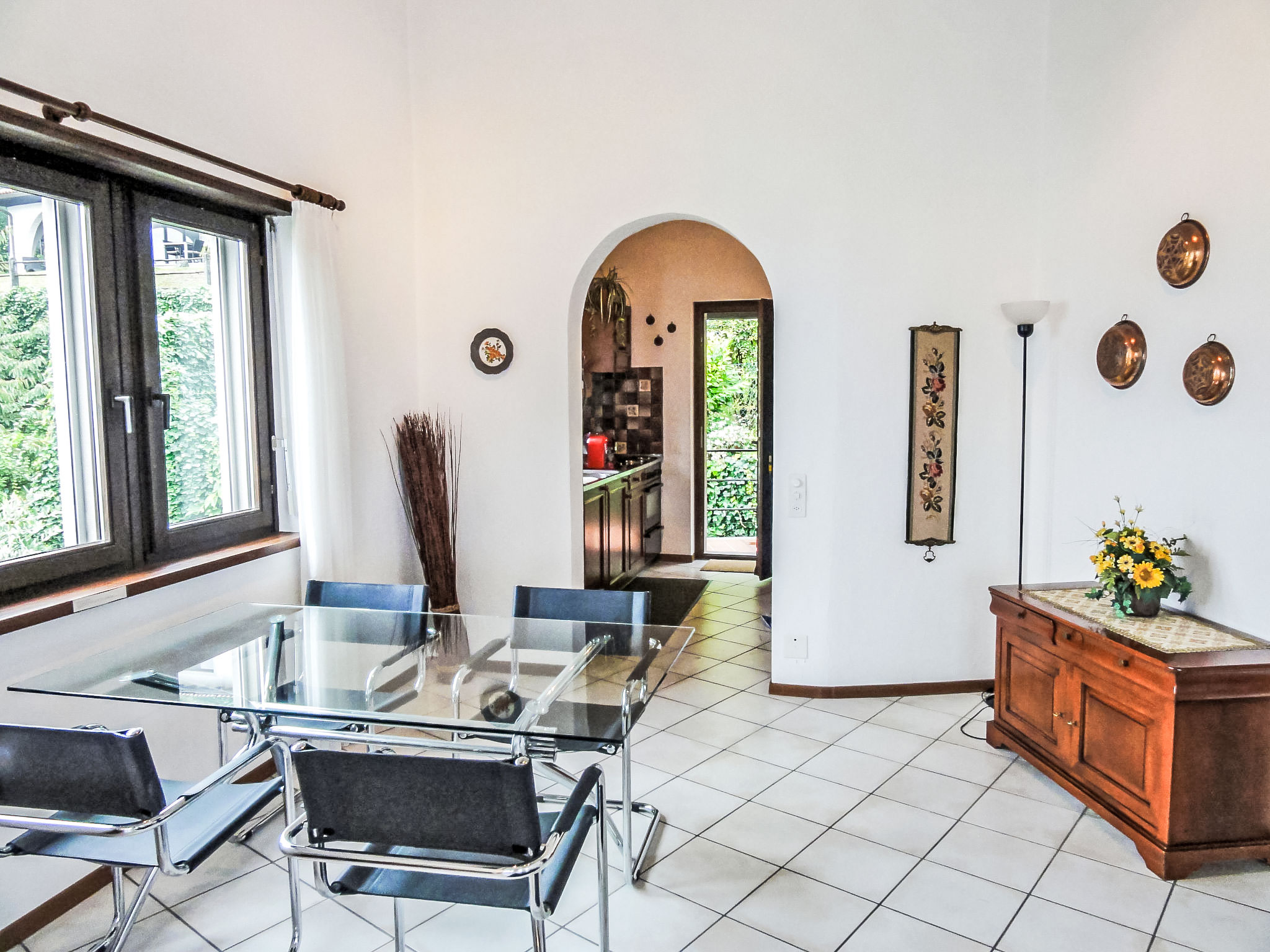 Piazzogna 19 km from Ascona: Modern, comfortable residence "Miralago", surrounded by trees and meadows. 4 houses in the residence. 39 apartments in the residence. Above Vira (3 km), in the district Gambarogno, in a quiet, sunny, elevated position on a slope, along the wooded area, 3 km from the lake, in a cul-de-sac, south-east facing position. For shared use: lawn for sunbathing, swimming pool angular heated (depth 170 - 170 cm, seasonal availability: 15.Apr. - 15.Oct.) with internal staircase and shutter cover. Outdoor shower, terrace, garden furniture. In the complex: reception, lounge, central heating system, washing machine (for shared use, extra). Motor access to the house the grounds. Parking. Grocery, restaurant 300 m, bus stop 50 m. Minigolf 4.5 km, walking paths from the house 100 m. Nearby attractions: Parco Botanico, Piazzogna 300 m, Mercato Luino IT, Mercato Ponte Tresa IT, Bellinzona Unesco-Mercato, Swissminiature, Melide, Schokomuseum, Caslano. Well-known lakes can easily be reached: Lago Maggiore, Lago di Lugano, Lago di Como, Lago Orta. Hiking paths: Gambarogno, Indemini, Monte Tamaro und Splash and SPA, Rivera, Locarno - Ascona Cardada. The 4 typical Ticino houses offer a magnificent panoramic view of the lake. 1 parking space per apartment is included in the price, each additional space is CHF 35/week.