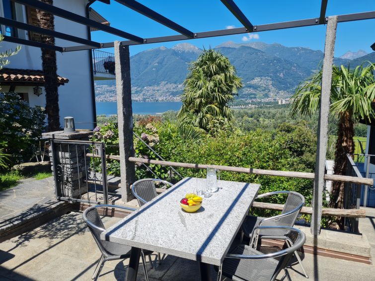 Magadino 15 km from Locarno: Modern, beautiful 2-family house "Cavriana", surrounded by trees. On the outskirts, in the district Gambarogno, in a quiet, sunny position in the residential district, 50 m from the edge of the forest, 2 km from the lake, in a cul-de-sac, in the countryside. Private: patio, pergola, terrace, garden furniture, barbecue. Steep motor access to the grounds. Stepped path (20 steps) to the house. Parking on the premises. Grocery 850 m, restaurant 700 m, bus stop "Postauto Linie 352" 500 m, railway station "SBB-CFF (Quartino)" 4.5 km. Golf course (18 hole) 19 km, minigolf 2.2 km, walking paths from the house 10 m. Nearby attractions: Mercato Luino IT, Mercato Ponte Tresa IT, Mercato Bellinzona (SA), Castelli di Bellinzona, Madonna del Sasso, Locarno-Orselina, Monte Verità, Ascona. Well-known lakes can easily be reached: Lago Maggiore, Lago di Lugano, Lago di Como. Hiking paths: Monti di Piazzogna, Valle Verzasca, Vallemaggia, Centovalli, Cardada-Cimetta, Locarno.