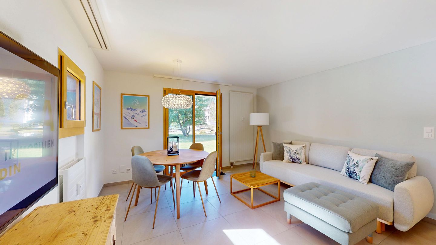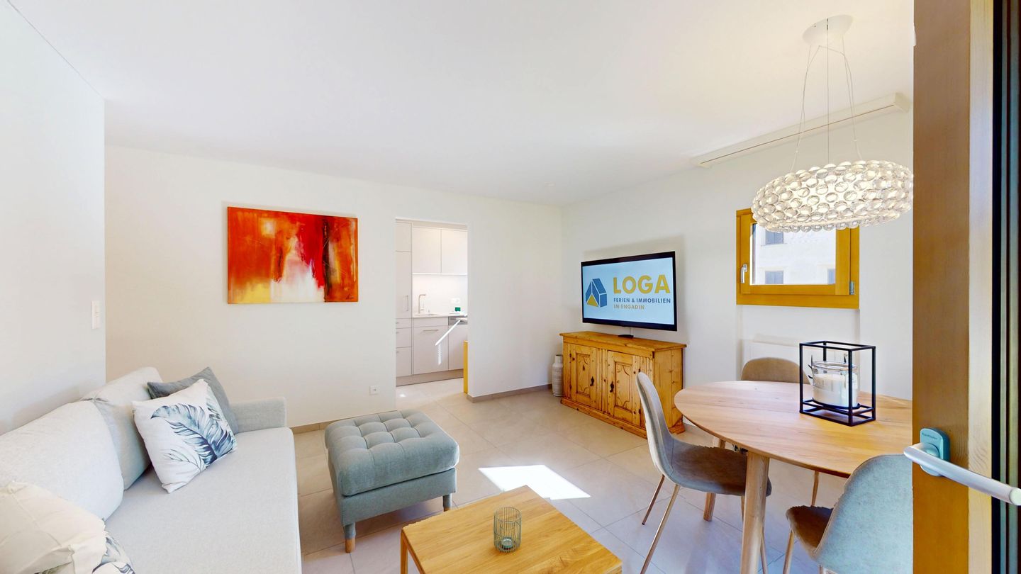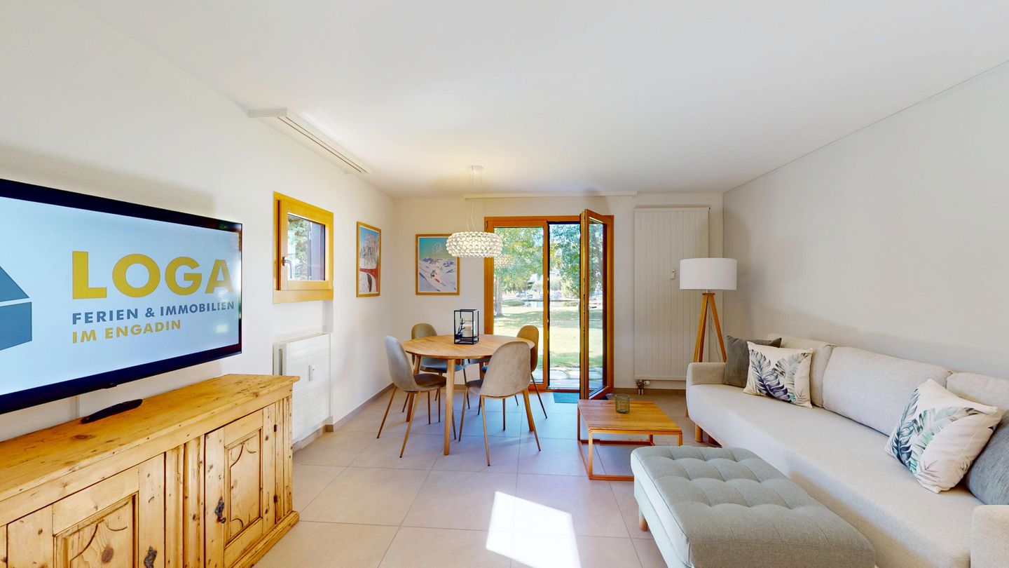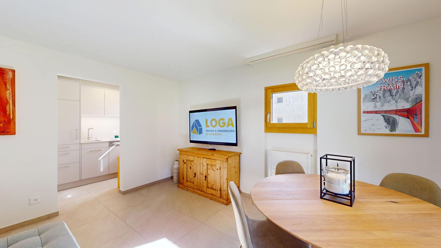 Chesa Chamuotsch is an apartment building in a quiet and sunny location. About 100 metres from the house, tennis courts in summer and an ice rink in winter invite you to enjoy sporting activities. The train station is about 500 metres away, and the Saluver/Marguns mountain railway is about 700 metres away. Various restaurants and cross-country skiing trails are in the immediate vicinity.