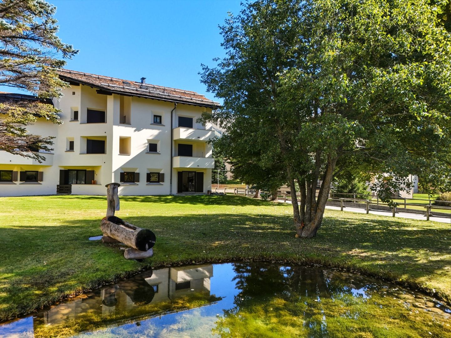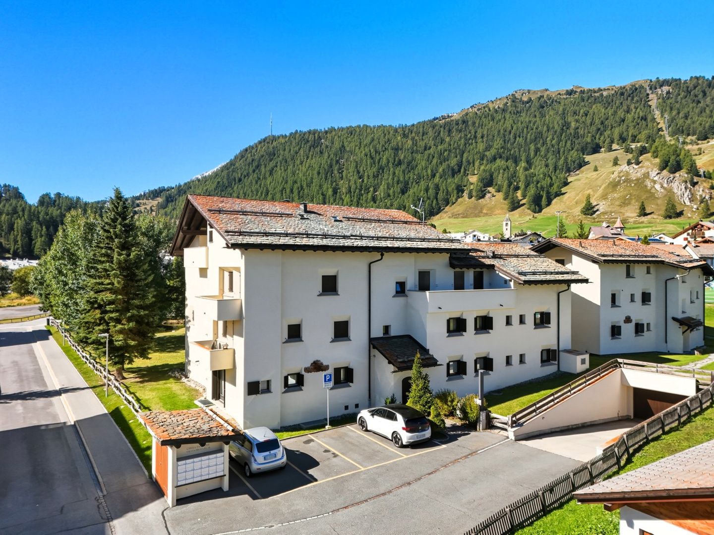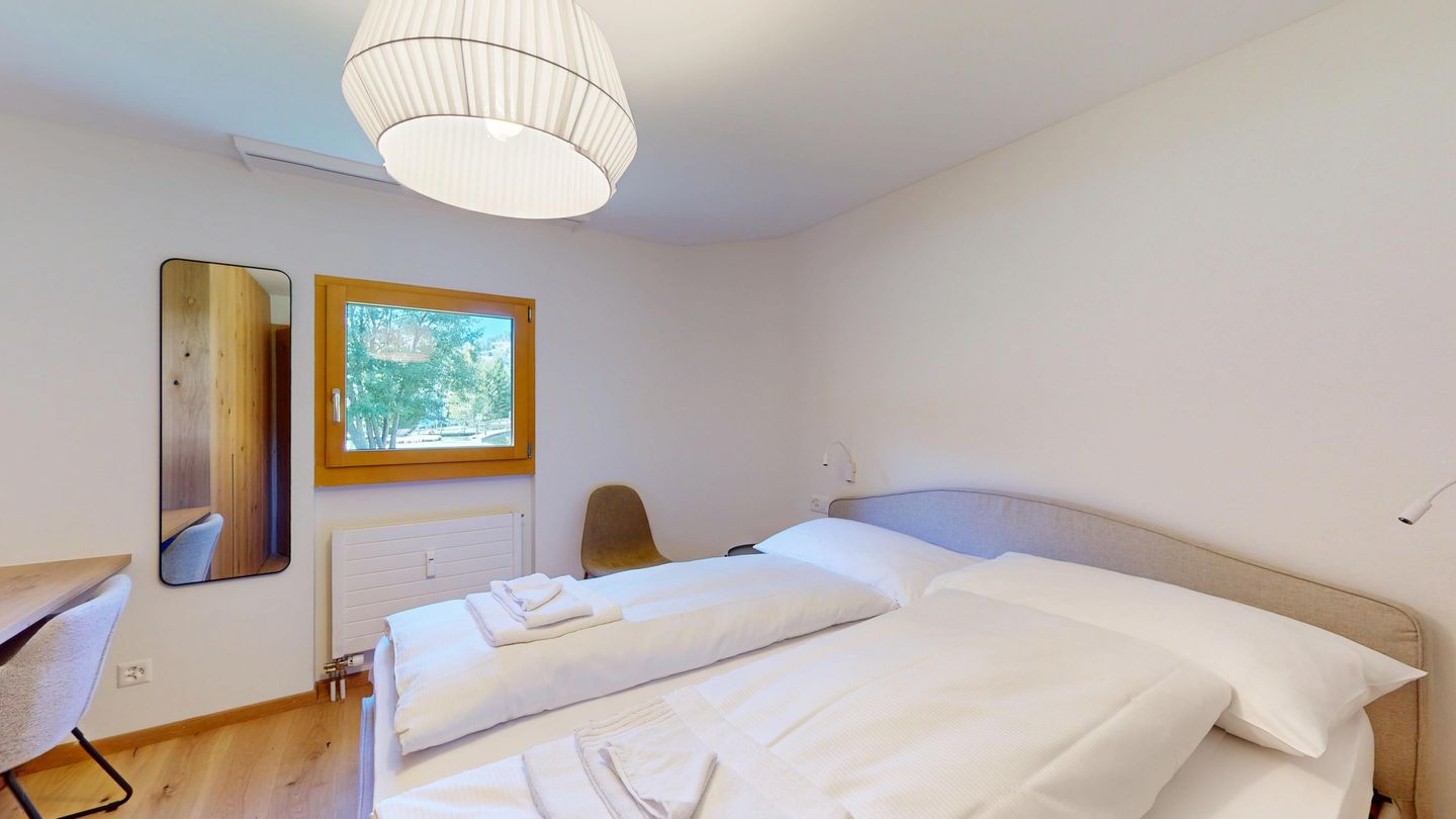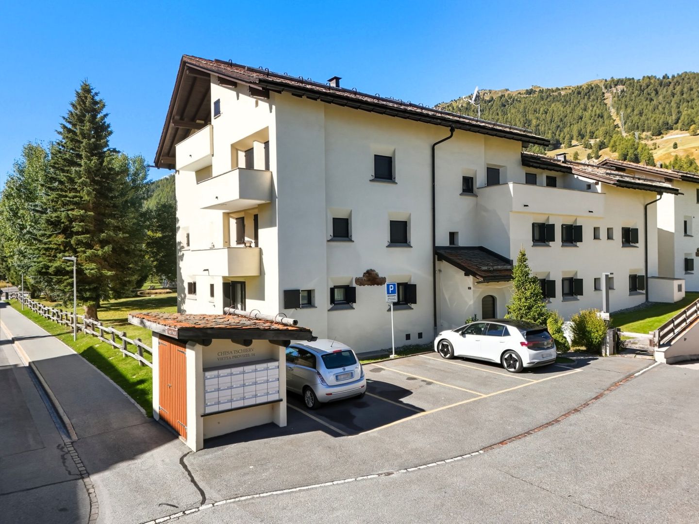 Chesa Chamuotsch is an apartment building in a quiet and sunny location. About 100 metres from the house, tennis courts in summer and an ice rink in winter invite you to enjoy sporting activities. The train station is about 500 metres away, and the Saluver/Marguns mountain railway is about 700 metres away. Various restaurants and cross-country skiing trails are in the immediate vicinity.