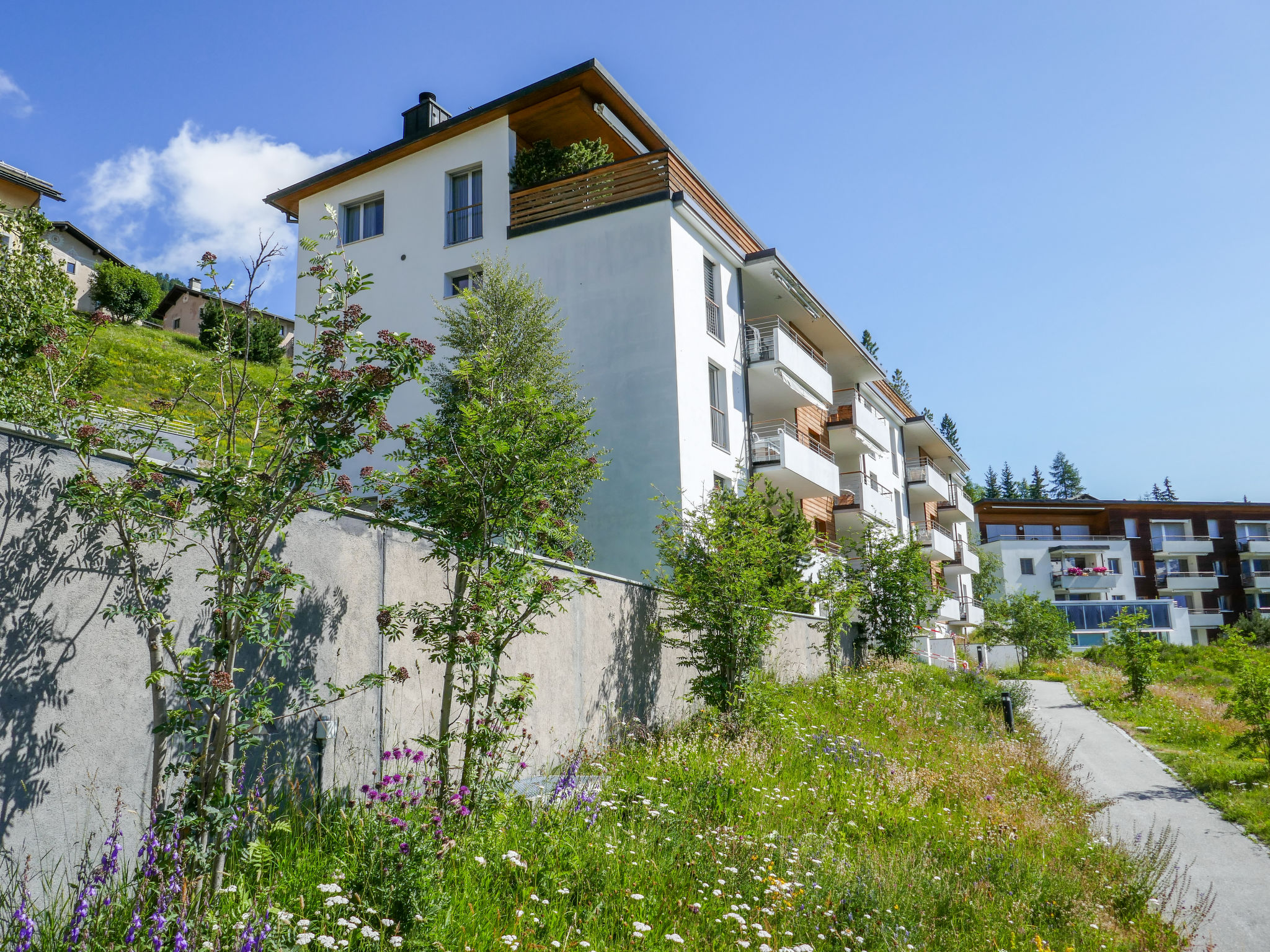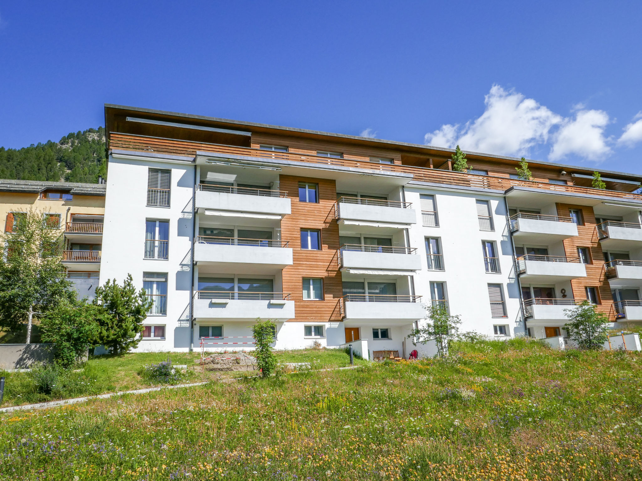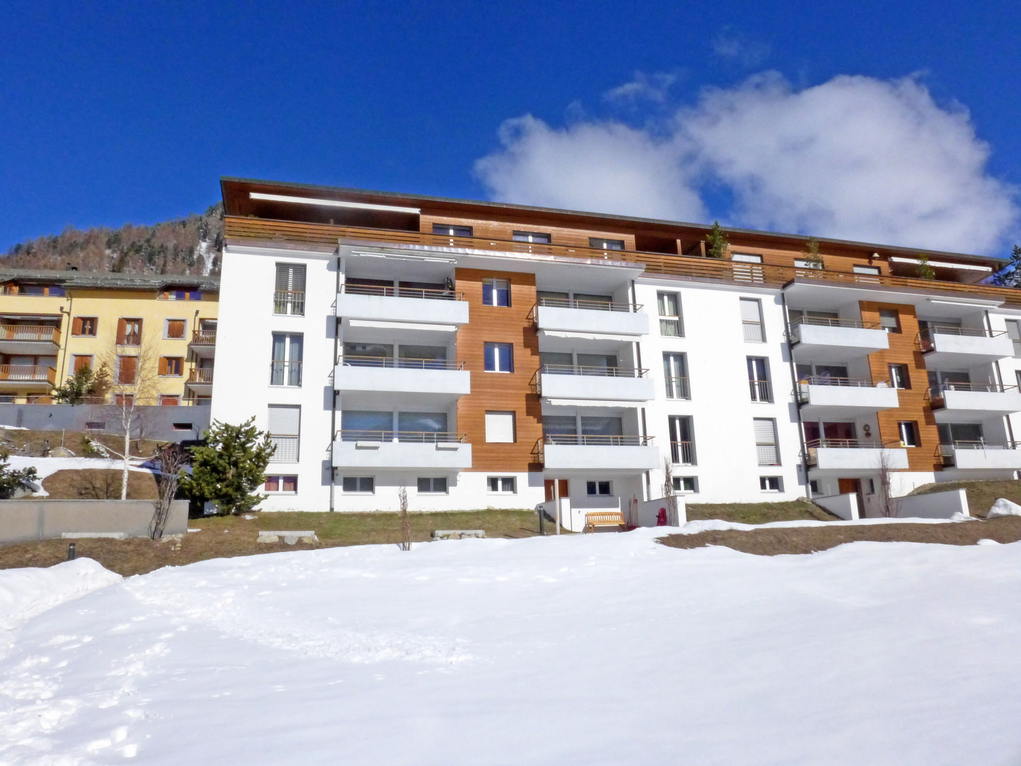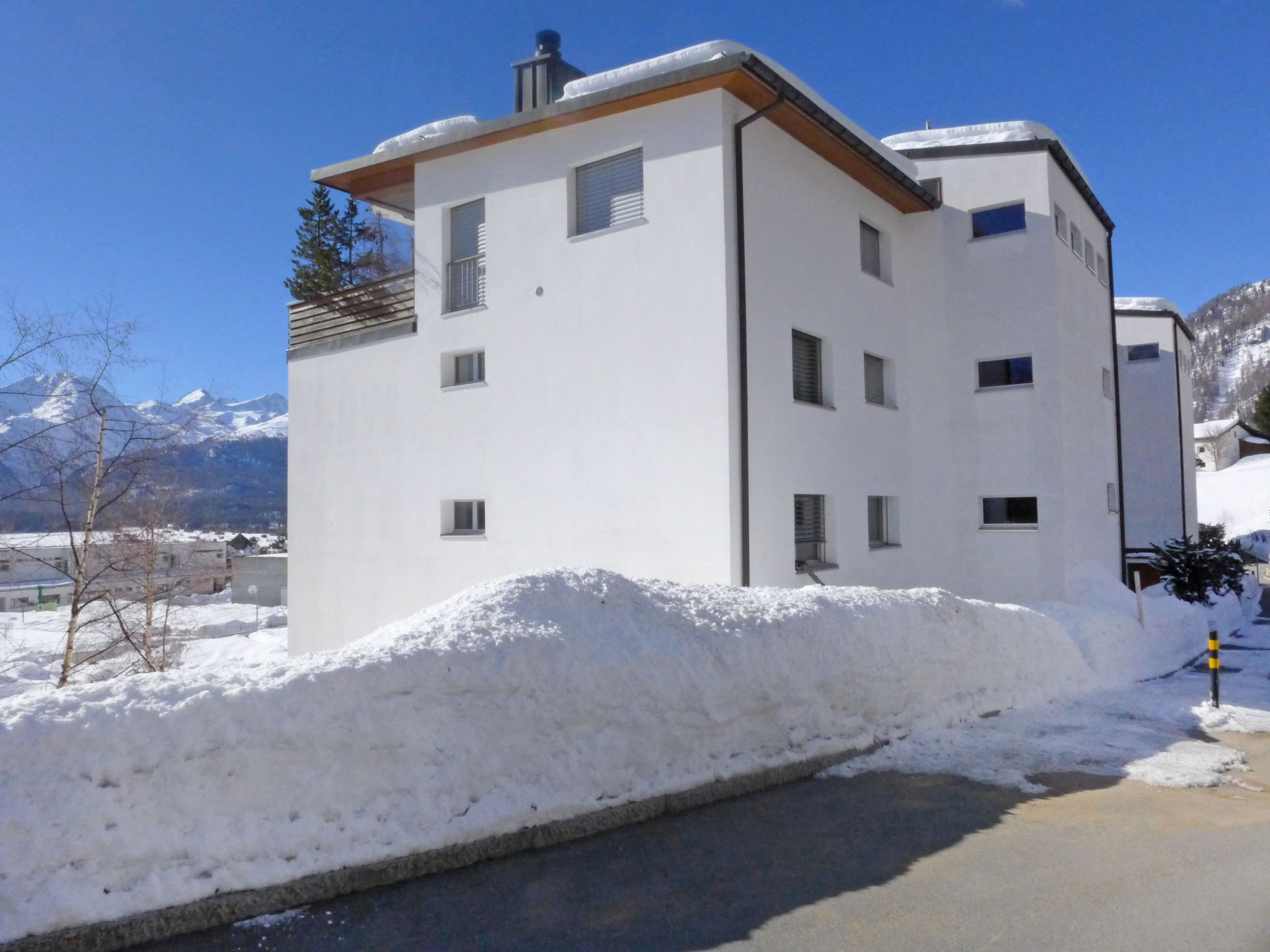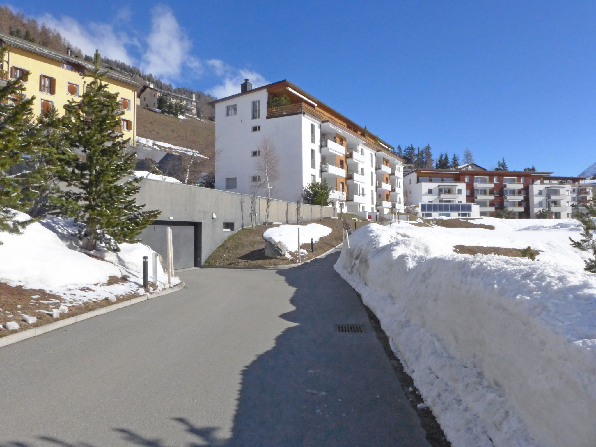 Samedan 8 km from St. Moritz: Modern, comfortable apartment house "Chesa Sur Puoz", 3 storeys. In the district of Sur Puoz, in a sunny position on a slope, in the residential district, 7.5 km from the lake. In the house: lift, storage room for bicycles, storage room for skis, central heating system, washing machine, tumble dryer (for shared use, extra), drying room. In Winter: please take snow chains, 4x4 car recommended in winter. Communal covered parking at the house. Shop 650 m, supermarket 900 m, restaurant 600 m, bakery 800 m, café 650 m, bicycle rental 3.5 km, bus stop "Samedan, Chesa Planta" 600 m, railway station "Samedan" 800 m, indoor swimming pool 7 km, thermal baths "Mineralbad & Spa Samedan" 650 m, lake St. Moritzer See 7.5 km. Golf course (18 hole) 1.4 km, surf school 13 km, tennis 1.5 km, indoor tennis centre 8.7 km, minigolf 7 km, riding stable 6.3 km, walking paths from the house 500 m, cycle lane 1 km, cable car 3.8 km, ski lift 850 m, ski rental 750 m, ski school 3.8 km, children's ski school 3.8 km, sled run 3.6 km, cross country ski track 1.4 km, ice rink 1.5 km, children's playground 800 m. Nearby attractions: Chesa Planta in Samedan 650 m, Segantini Museum in St. Moritz 9.5 km, Nietzsche Haus in Sils-Maria 17 km, Olympic Bob Run St. Moritz 5.6 km, Kirche St. Maria in Pontresina 7.6 km. Well-known ski regions can easily be reached: Corviglia - Piz Nair 3.8 km, Corvatsch - Furtschellas 14 km, Diavolezza - Lagalb 18 km. Well-known lakes can easily be reached: St. Moritzer See 7.5 km, Silvaplana See 13 km, Silser See 17 km. Hiking paths: Corviglia - Piz Nair, Muottas Muragl, Val Bever & Val Rosegg. Please note: Loading and unloading of baggage is possible at the holiday house.