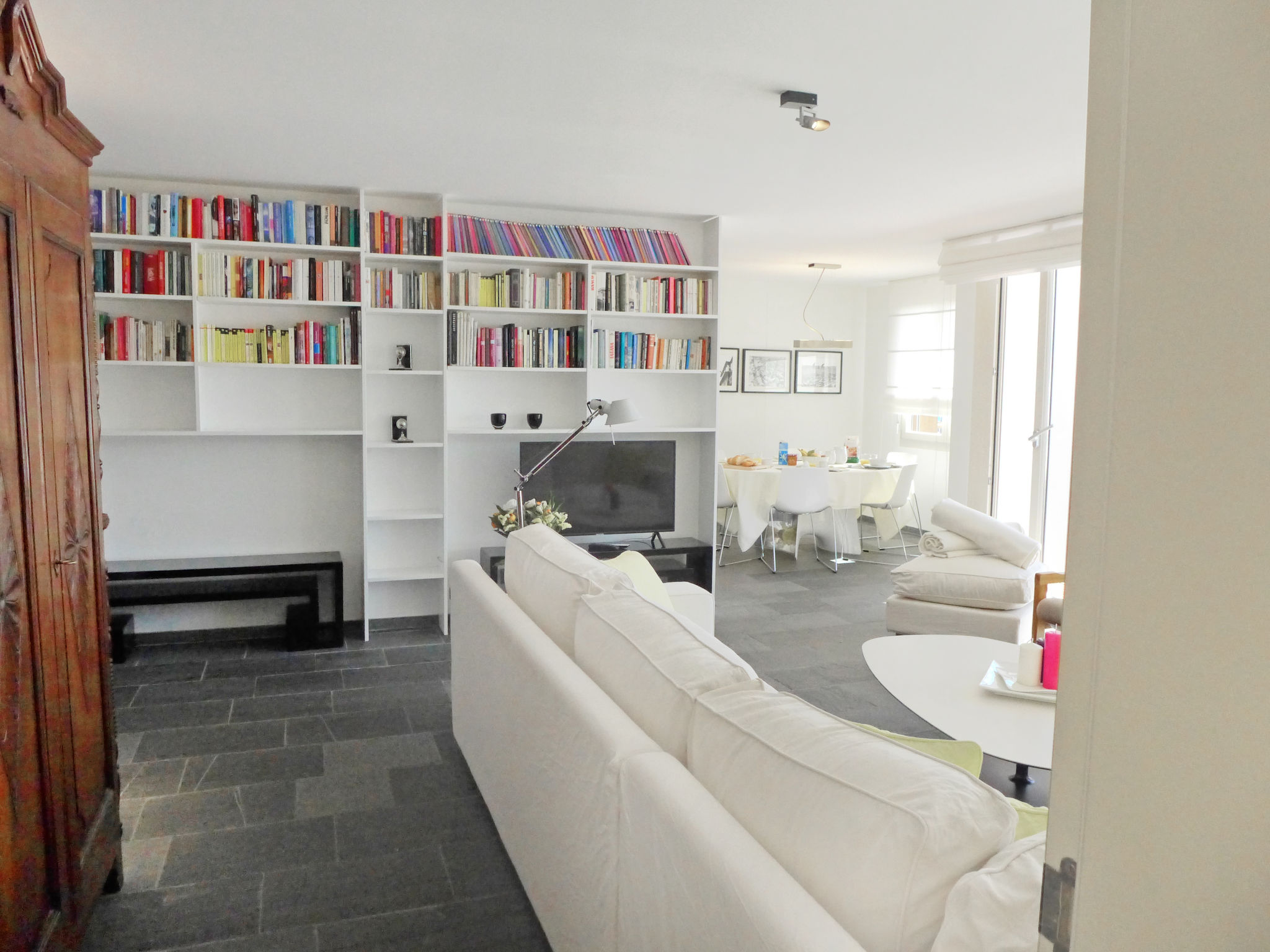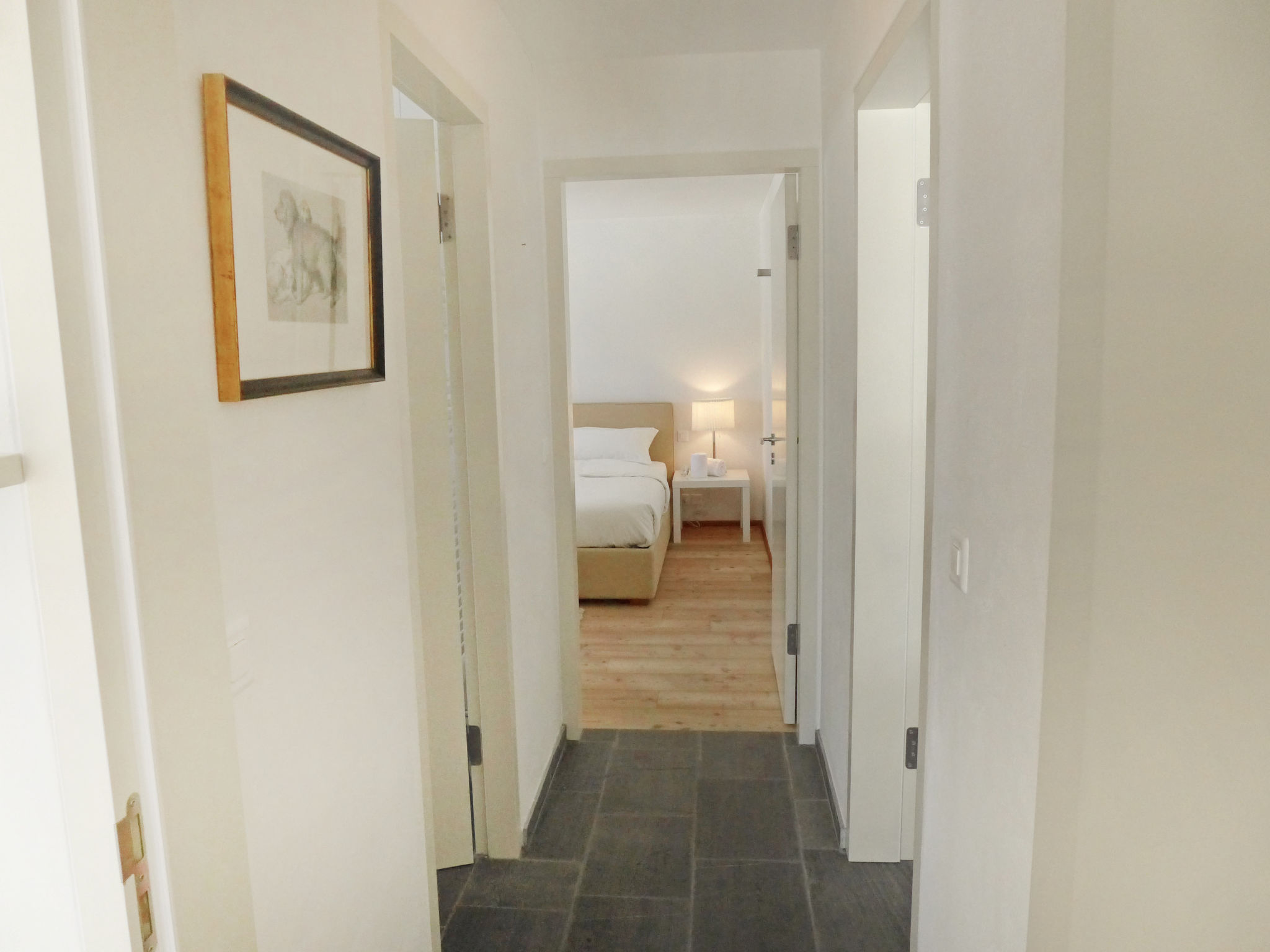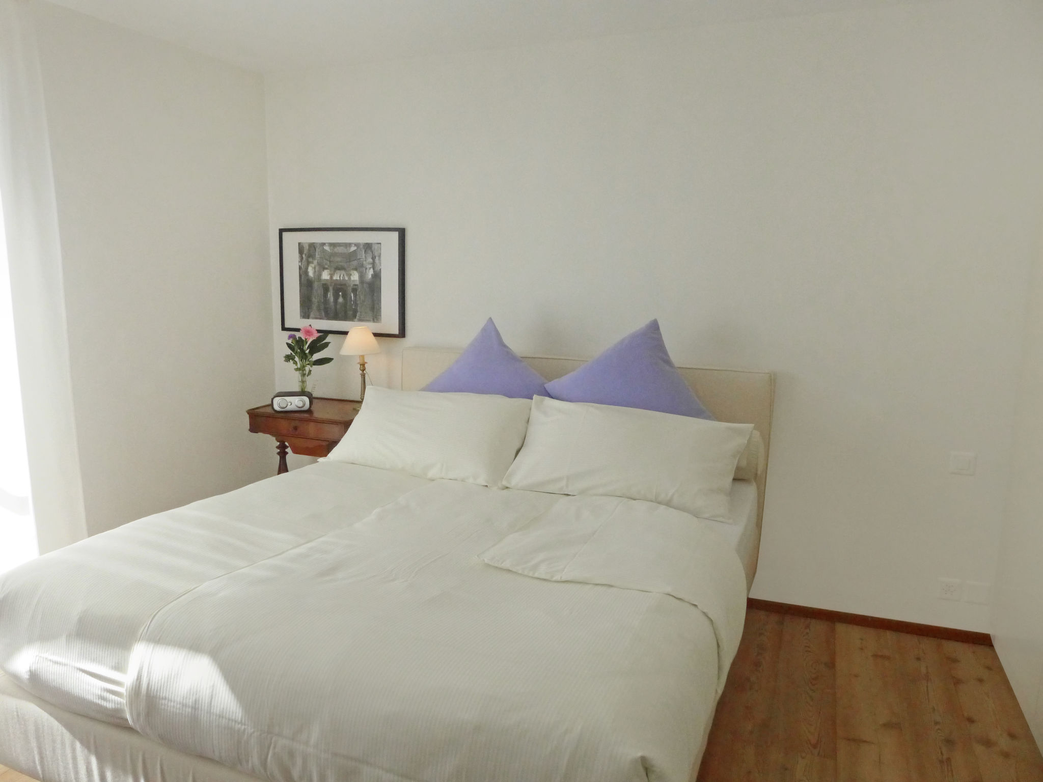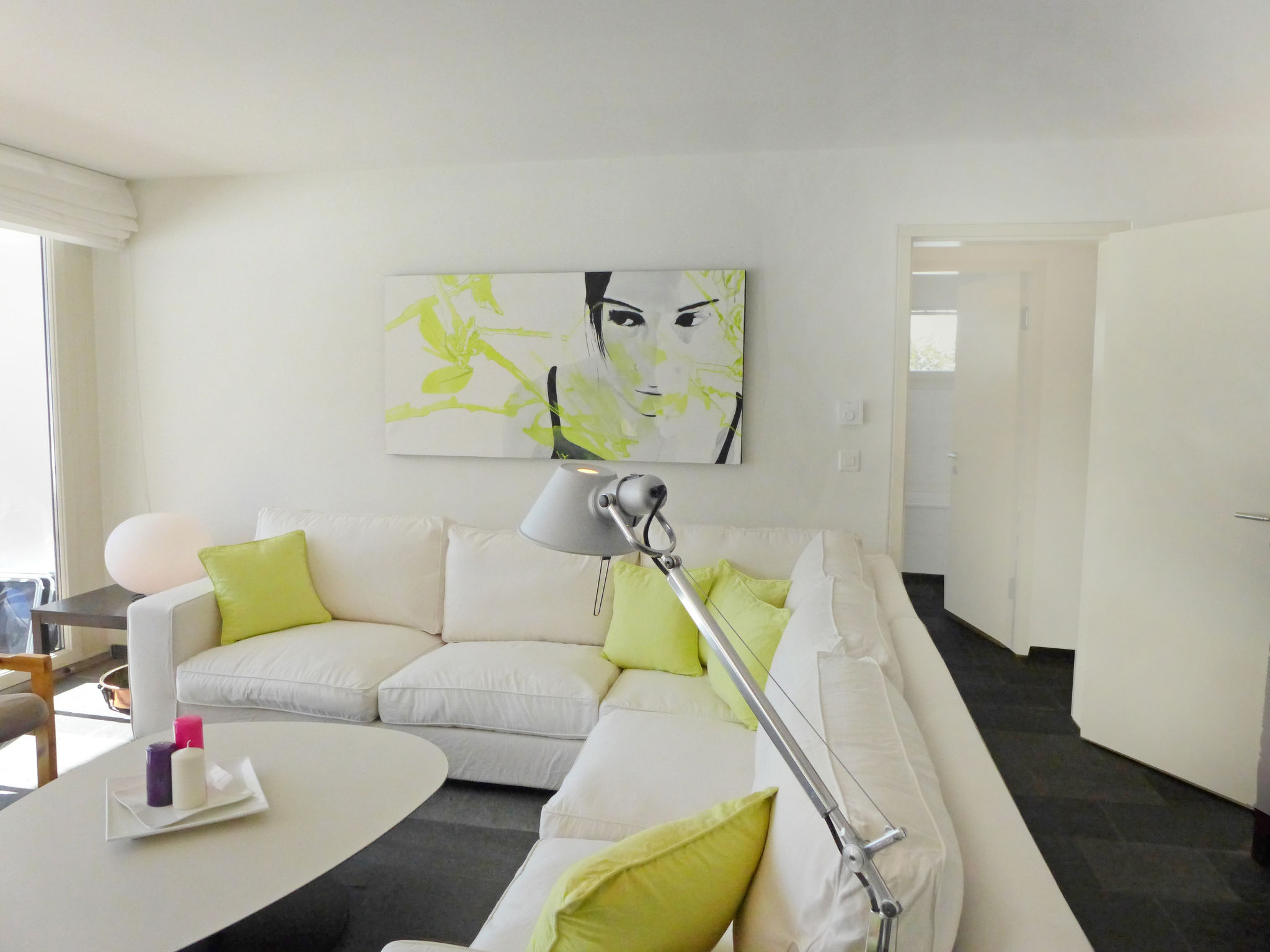 "Chesa Sur Puoz 7", 3-room apartment 95 m2 on 1st floor. Spacious and bright, comfortable and modern furnishings: living/dining room with panoramic window with TV (flat screen). Exit to the balcony. 1 double bedroom with 1 french bed (1 x 160 cm, length 200 cm). 1 room with 2 beds (95 cm, length 200 cm). Open kitchen (oven, dishwasher, 4 ceramic glass hob hotplates, freezer, electric coffee machine, Capsules for coffee machine (Nespresso) extra). Bath/bidet/WC, shower/WC. Heating. Wooden floors, natural stone floors. Terrace furniture (2). Marvellous panoramic view of the mountains and the resort. Facilities: iron, hair dryer. Internet (WiFi, free). Garage space n 14 on the property (1 car), height 235 cm, width 310 cm. Please note: non-smokers only, non-smoking house. Maximum 1 pet/ dog allowed.