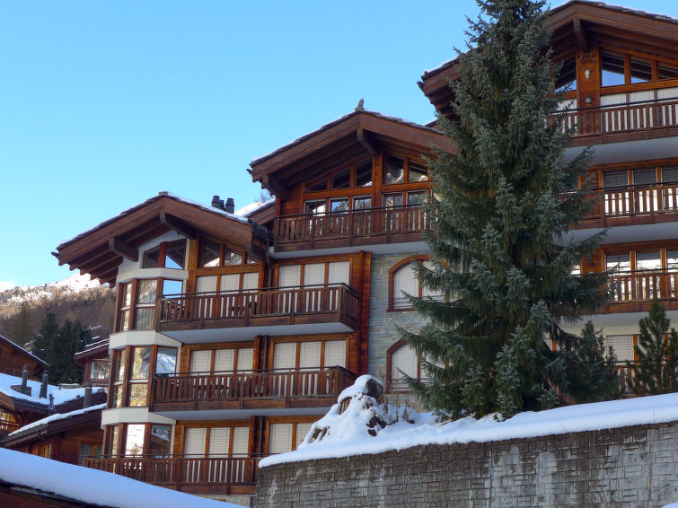 Elevator to the house can be used with the key large, modern, beautiful apartment house "Shangri La", 6 storeys. In the house: lift, storage room for skis, central heating system. Grocery 350 m, supermarket 450 m, restaurant 40 m, bakery, bicycle rental 350 m, bus stop "Brücke zum Steg" 200 m, railway station "Bahnhof Zermatt" 700 m. Mountain railway, ski rental 500 m, ski bus stop 200 m, ski school, children's ski school 450 m, children's playground 600 m. Cabs cannot stop right in front of the house. The keys‘ handover takes place by the agency Interhome in Zermatt.