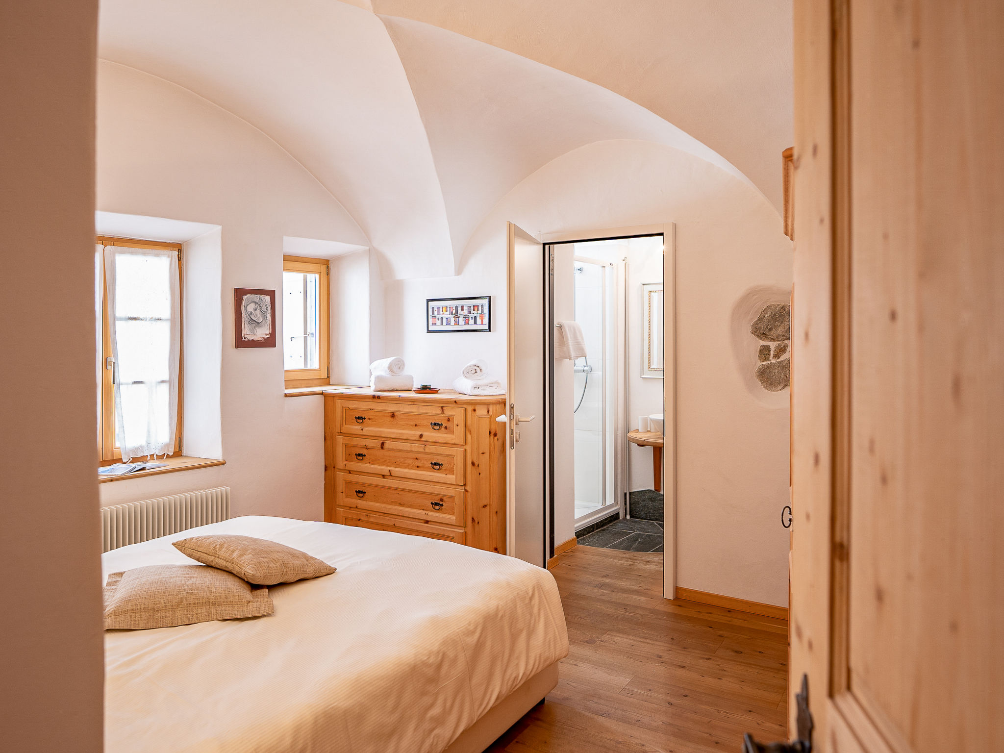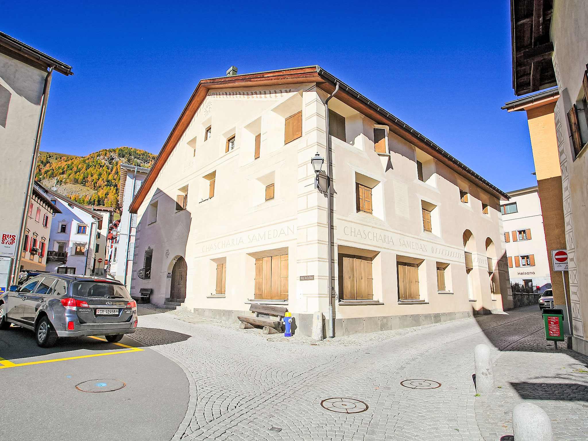 Samedan 8 km from St. Moritz: Very beautiful, historical apartment house "Chesa Chascharia", 2 storeys, from the 19th century. In the centre of Samedan, in a central position, excellent location: right in the centre but still quiet, 5 km from the lake. In the house: lift, storage room for skis, central heating system, washing machine, tumble dryer (for shared use). Communal covered parking. Shop 10 m, supermarket 300 m, restaurant 10 m, bakery, café 500 m, bicycle rental 2.9 km, bus stop "Samedan, Central" 20 m, railway station "Samedan" 550 m, indoor swimming pool 7 km, thermal baths "Mineralbad & Spa Samedan" 120 m, lake St. Moritzer See 5 km. Golf course (18 hole) 1.4 km, surf school 13 km, tennis 1.5 km, indoor tennis centre 7.3 km, minigolf 7 km, riding stable 6.3 km, walking paths from the house, cycle lane 300 m, cable car 3.1 km, ski lift 450 m, ski rental 400 m, ski school 3.1 km, children's ski school 3.1 km, sled run 3.6 km, cross country ski track 1.4 km, ice rink 1.5 km, children's playground 300 m. Nearby attractions: Chesa Planta in Samedan 300 m, Segantini Museum in St. Moritz 9.5 km, Nietzsche Haus in Sils-Maria 17 km, Olympic Bob Run St. Moritz 5.5 km, Kirche St. Maria in Pontresina 7.6 km. Well-known ski regions can easily be reached: Corviglia - Piz Nair 3.1 km, Corvatsch - Furtschellas 14 km, Diavolezza - Lagalb 18 km. Well-known lakes can easily be reached: St. Moritz See 5 km, Silvaplana See 13 km, Silser See 17 km. Hiking paths: Corviglia - Piz Nair, Muottas Muragl, Val Bever & Val Rosegg.