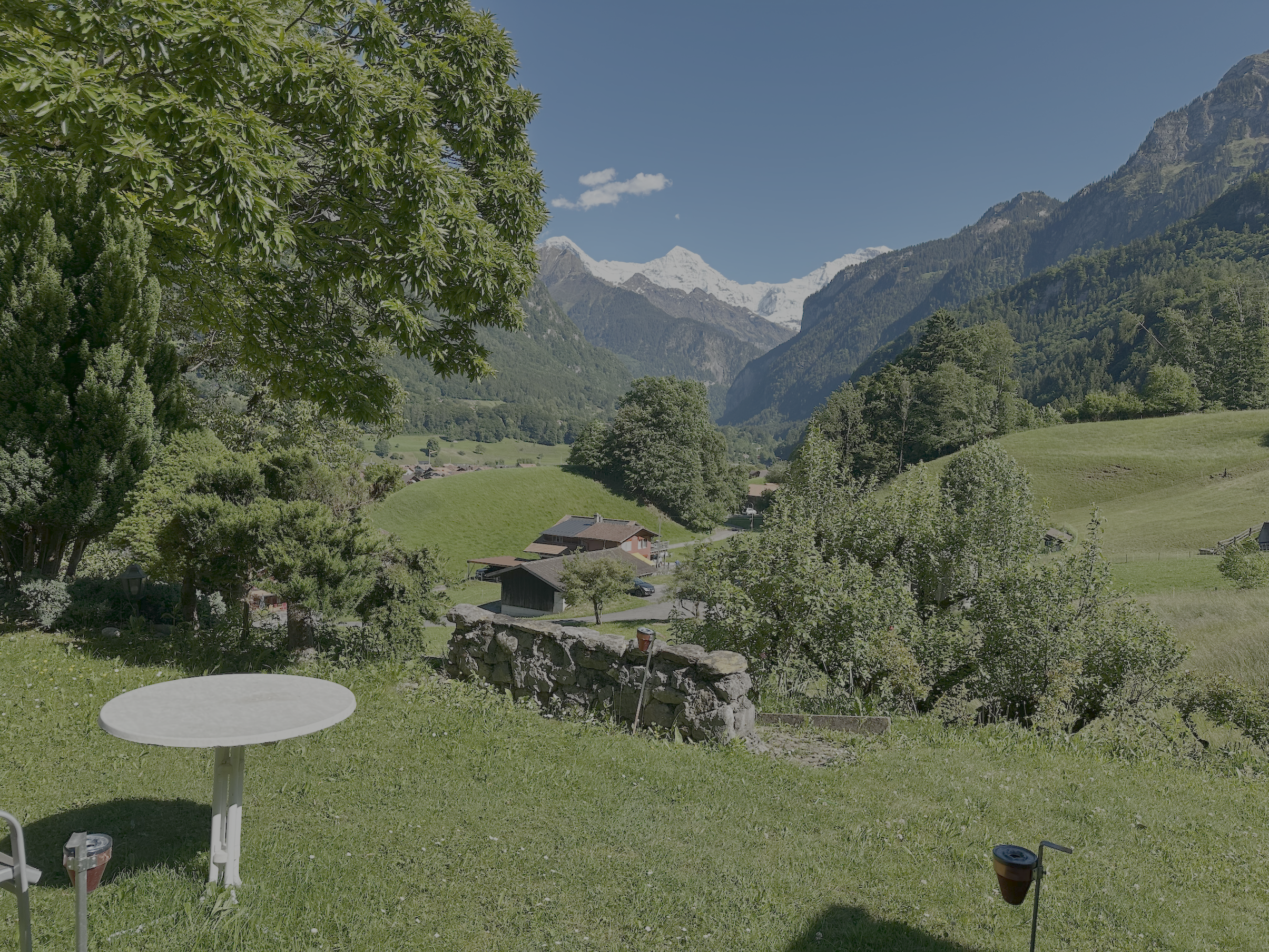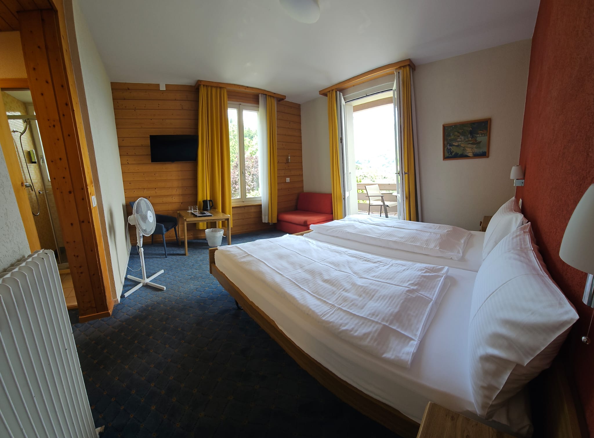 The hotel has an idyllic location on a hillside overlooking the small and beautiful village of Wilderswil – facing the mountains of Eiger, Mönch, Jungfrau & the lake Brienz. It takes 5min to walk to the centre of Wilderswil; Interlaken is 4 km away accessed by train, bus or footpath. There are many leisure activities in Interlaken i.e. golf course, tennis courts, bowling, mini golf, public swimming pool as well as the Casino, discos, restaurants and bars. From Wilderswil you can make unforgettable hiking or skiing tours. The region offers 100km of hiking paths in summer and winter also 213 captivating km of superb ski slopes. All mountain railways can be easily reached from the Wilderswil train station some 15min walk away. In the immediate vicinity are many excursion facilities such as Jungfraujoch, Schynige Platte with Alpine garden, Schilthorn, Swiss open air museum at Ballenberg and many more. The central location is perfect for day trips to Berne, Lucerne or Zürich.Popular holiday hotel with amazing view of the Eiger, Mönch & Jungfrau and the lake of Brienz. 5'from the centre. Excel. cuisine. Nice garden with solar heated pool, pleasant lounge, cosy hotel bar