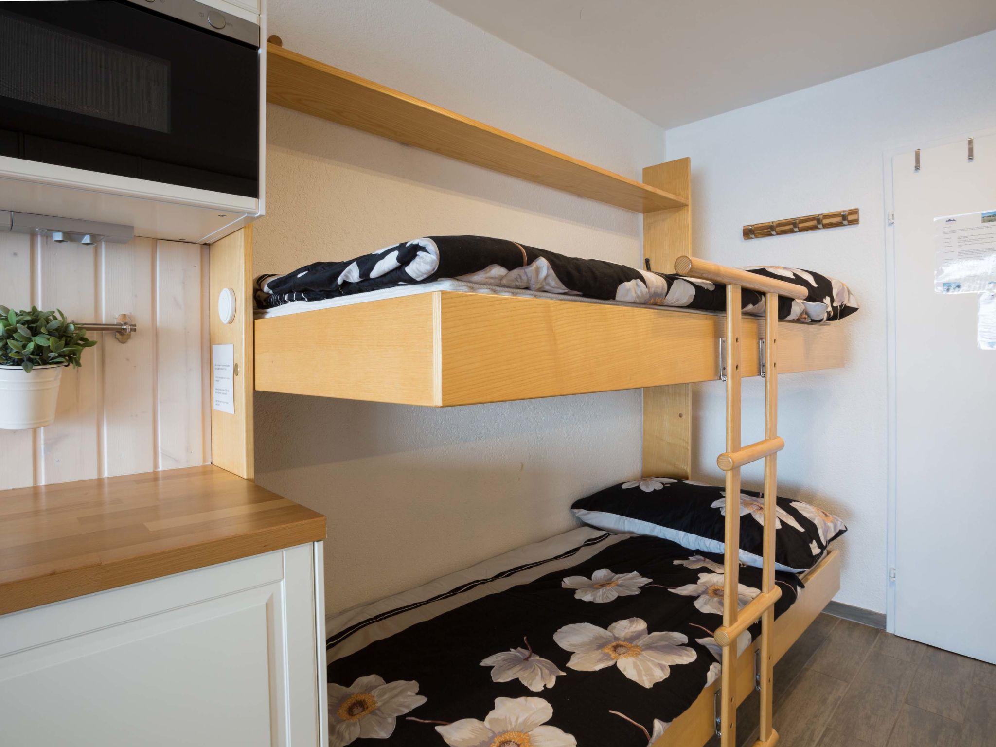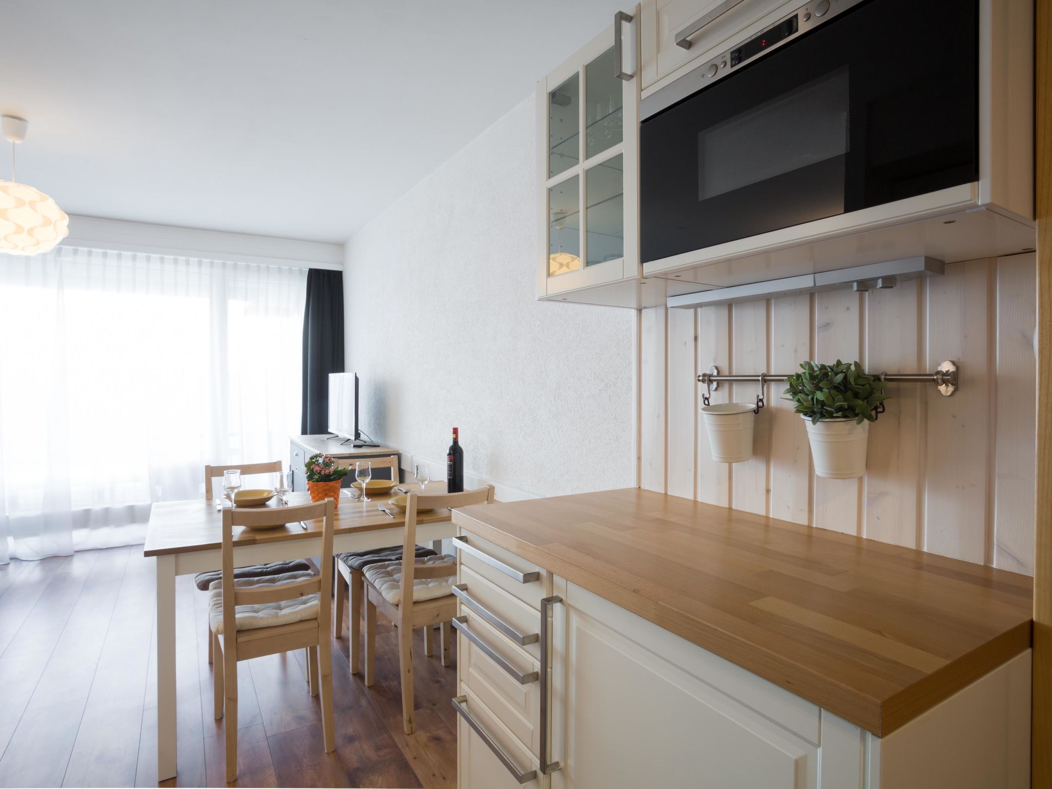 "Greppon 107", 1-room studio 29 m2 on 4th floor. Comfortable and stylish furnishings: living/sleeping room with 1 double sofabed (140 cm, length 200 cm), 1 double wall-trunk bed (2 x 80 cm, length 190 cm). Exit to the balcony. Open kitchen (dishwasher, 4 ceramic glass hob hotplates, microwave). Bath/WC. Balcony, east facing position. Balcony furniture. Very beautiful view of the mountains, the ski run and the countryside. Facilities: Internet (WiFi, extra). Please note: non-smokers only. Maximum 1 pet/ dog allowed.