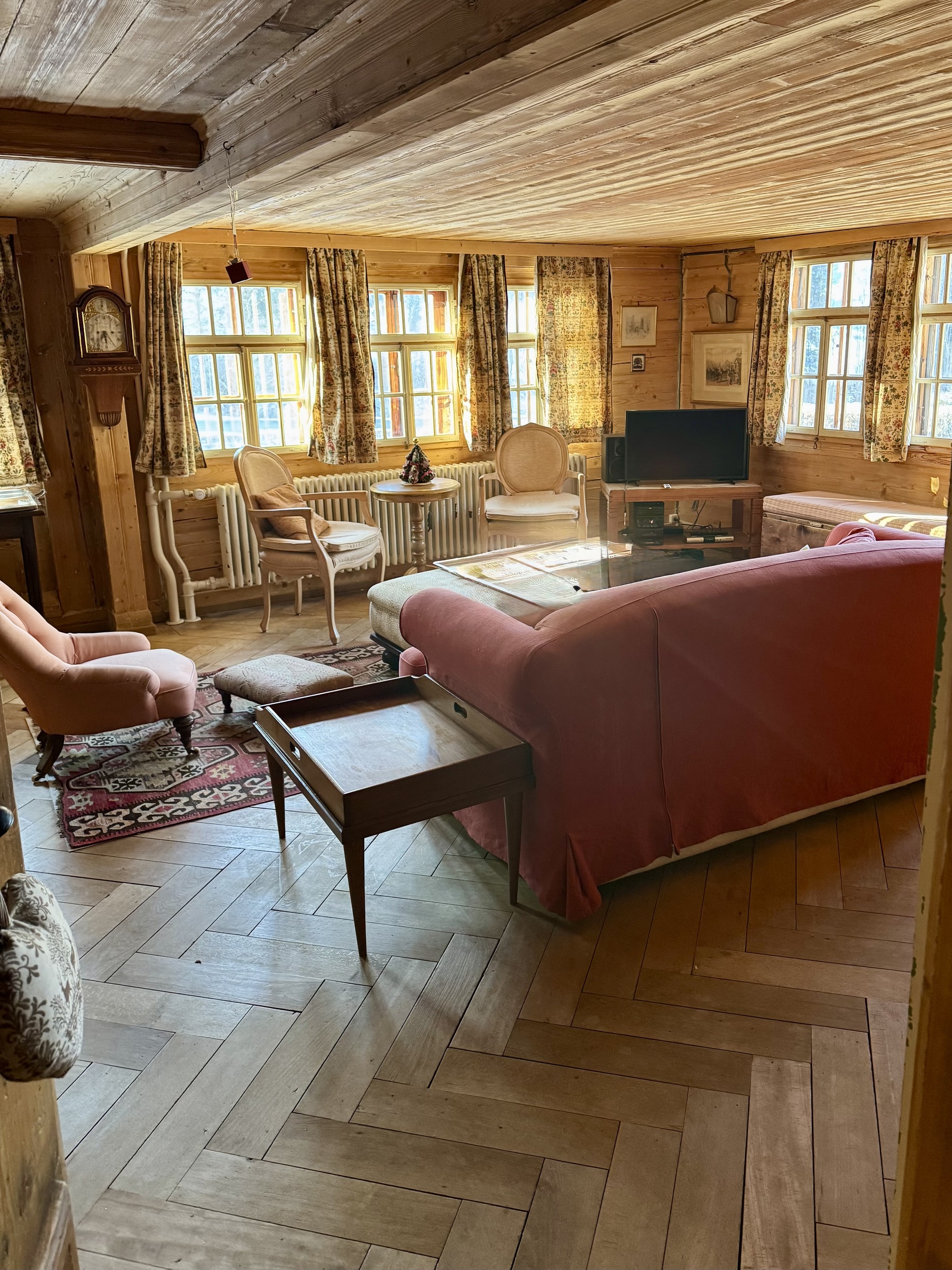 Charming duplex apartment in an old chalet of two apartments. This apartment is located close to shops and enjoys a quiet location. Large garden, parking space and children's park nearby.