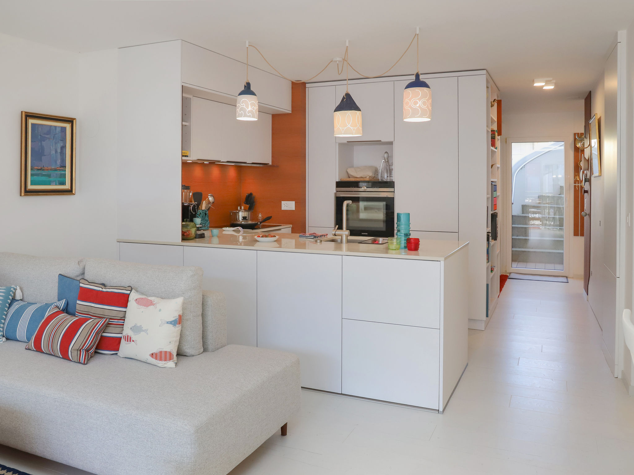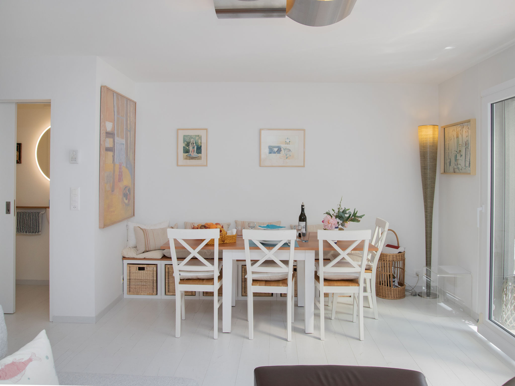 "Bougainville C3/R", 3-room apartment 117 m2 on 2 levels, on the ground floor, south-east facing position. Spacious, fully renovated in 2025, comfortable and tasteful furnishings: living/dining room. Exit to the balcony, south facing position and east facing position. Open kitchen (oven, dishwasher, 4 induction hot plates, freezer, electric coffee machine, Capsules for coffee machine (Nespresso) extra, combination microwave). Sep. WC. Upper floor: 1 room, without wardrobe with 1 double bed (2 x 90 cm, length 200 cm), cable TV. Office. Exit to the balcony, north facing position and west facing position. Shower/WC. Terrace. Terrace furniture. Very beautiful view of the mountains and the canal. Facilities: washing machine, dryer. Internet (WiFi, free). Parking space n 24 (roofed). Please note: non-smokers only.