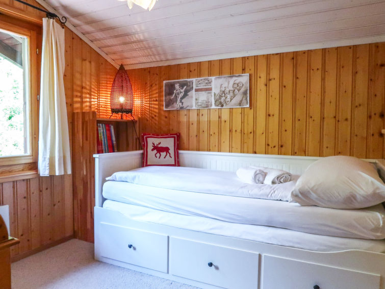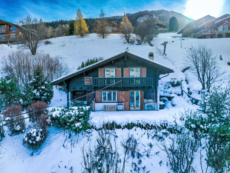 "Cheechako", 4-room chalet 100 m2 on 2 levels. Comfortable and beautiful furnishings: small entrance hall. Living/dining room with Scandinavian wood stove and cable TV. Exit to the terrace, north facing position and west facing position. Kitchenette (oven, dishwasher, 4 ceramic glass hob hotplates, toaster, kettle, electric coffee machine, Capsules for coffee machine (Nespresso) extra, raclette grill, fondue Set (chinoise, cheese)). Shower/WC. Electric heating. Upper floor: 1 room with 1 french bed (180 cm, length 200 cm). Exit to the balcony, north facing position. 1 room with 1 double bed (2 x 90 cm, length 190 cm). Exit to the balcony, north facing position. 1 room with 1 pull-out bed (2 x 80 cm, length 200 cm). Bath/WC. Garden, north facing position and west facing position. Terrace furniture, barbecue, deck chairs (4). Very beautiful view of the mountains and the valley. Facilities: washing machine, hair dryer. Internet (WiFi, free). Parking (1 car).