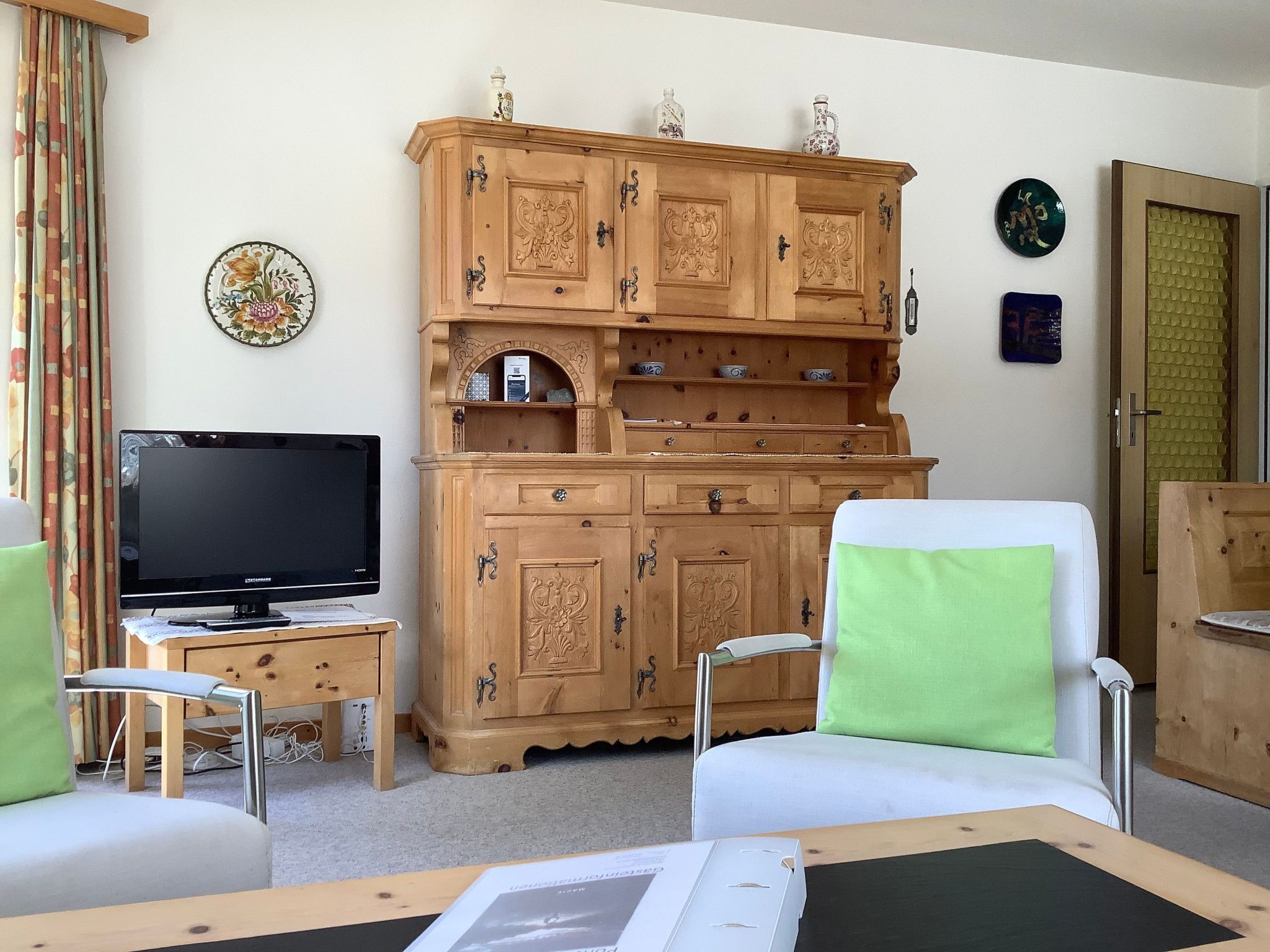 Inside, a comfortable living room with a sunny balcony awaits you, where you can enjoy relaxing hours outdoors with a view of the 180-degree mountain panorama. The flat has all modern amenities such as WLAN, TV and a separate kitchen equipped with a ceramic hob, dishwasher, large fridge, oven, microwave and a Nespresso coffee machine. You will also find a fondue set and a kettle. For a good night's sleep, the bedroom has a comfortable double bed.