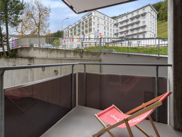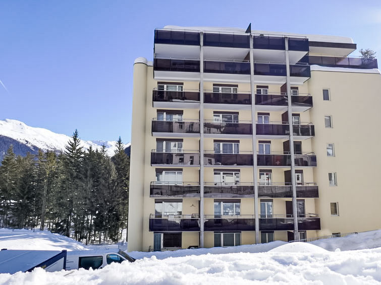 Davos-Platz: Comfortable apartment block "Allod-Park", 1'560 m a.s.l.. In the centre 700 m from the centre of Davos Platz, in a central, quiet position. For shared use: park. In the house: reception, restaurant, bar, WiFi, lift, storage room for skis, central heating system, washing machine (extra), tumble dryer (for shared use, extra), drying room, ski boot dryer. Linen change (suppl. charge extra). Towel change (suppl. charge extra). Room cleaning on request (extra). Motor access to the house. Parking (extra), communal covered parking (extra). Dimension: height 200 cm. Supermarket 800 m, shopping centre 400 m, restaurant 10 m, bakery 300 m, bus stop "Kongresszentrum" 100 m, railway station "Davos-Platz" 1.2 km, park "Kurpark" 50 m, outdoor swimming pool, indoor swimming pool 200 m, public bathing area 3.1 km, bathing lake 2.7 km, lake Davoser See 2.7 km. Golf course (18 hole) 2 km, surf school 3.1 km, sailing school 3.1 km, tennis 4 km, indoor tennis centre 4 km, minigolf 400 m, riding stable 5 km, sports centre 200 m, walking paths from the house, cycle lane 400 m, cable car 1.5 km, mountain railway 600 m, chair lift 1.8 km, gondola lift 1.7 km, slopes 1.7 km, ski rental 1.7 km, ski bus stop 50 m, ski school 1.5 km, children's ski school 1.5 km, cross country ski track 1 km, ice rink 200 m, children's playground 50 m. Nearby attractions: Kirchner Museum 50 m. Well-known ski regions can easily be reached: Parsenn 1.5 km, Jakobshorn 1.2 km, Rinerhorn 8 km. Well-known lakes can easily be reached: Davosersee 2.7 km. Please note: Loading and unloading of baggage is possible at the holiday house. The holiday properties may differ in situation, size and location. The holiday properties may differ in living space, floorplan, equipment and furnishing. Toboggan run Schatzalp-Davos. Garage spaces on request: CHF 10.00 per day. WiFi at or near the reception. Special features: weekly raclette and fondue evening. Meals can be ordered in the restaurant. Reservation of tickets for events.