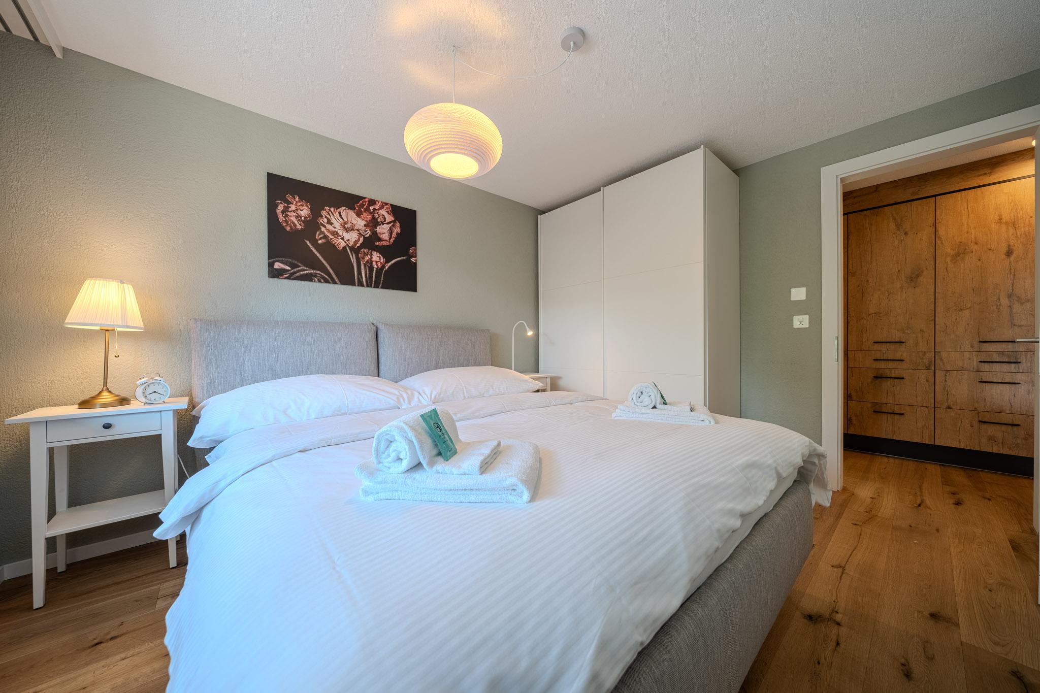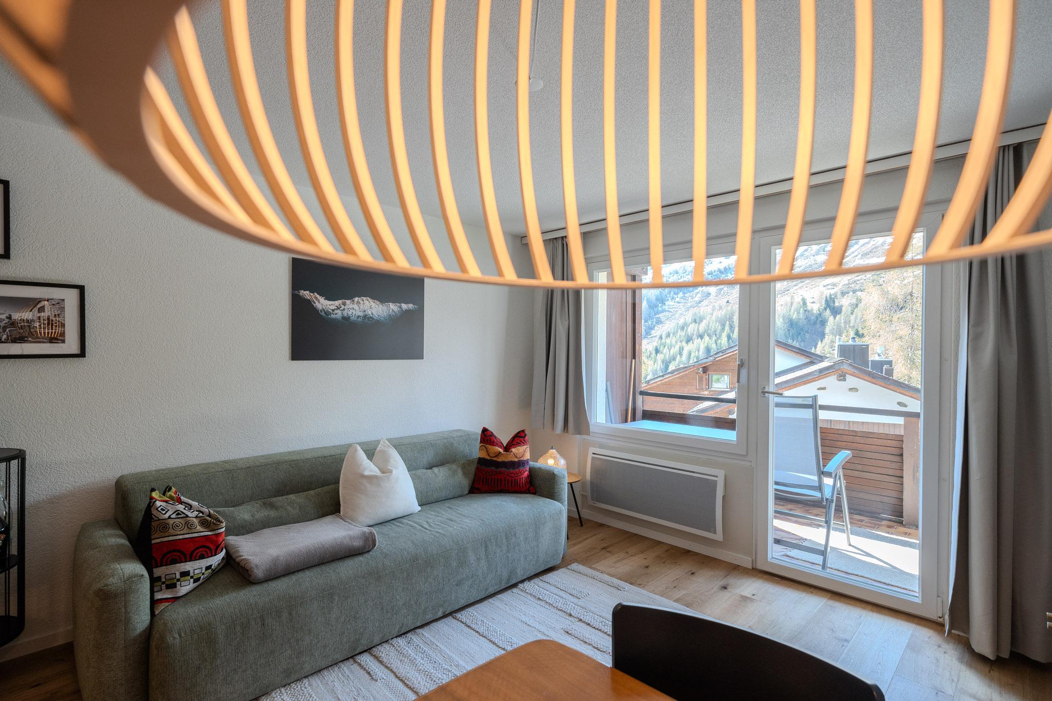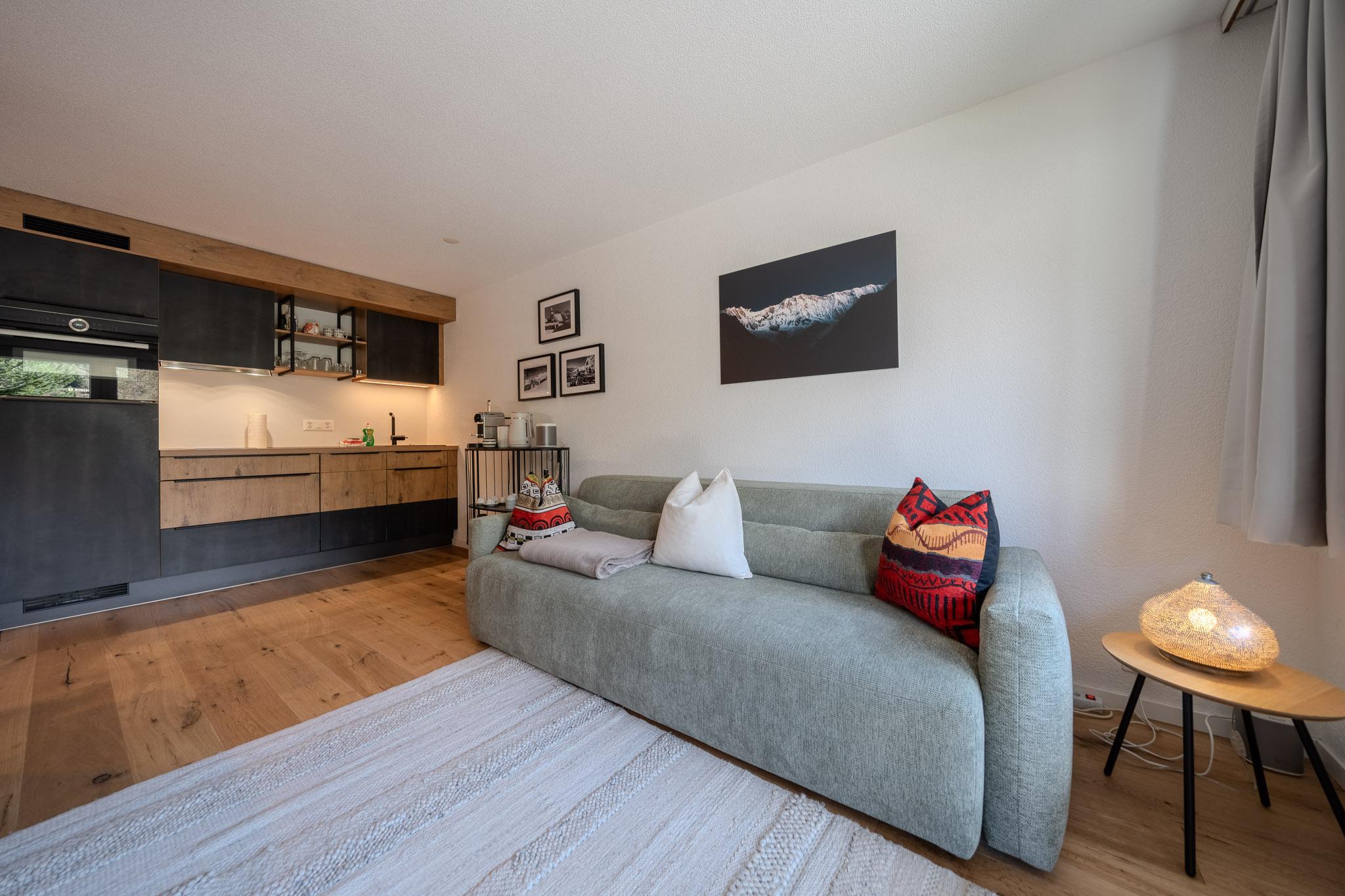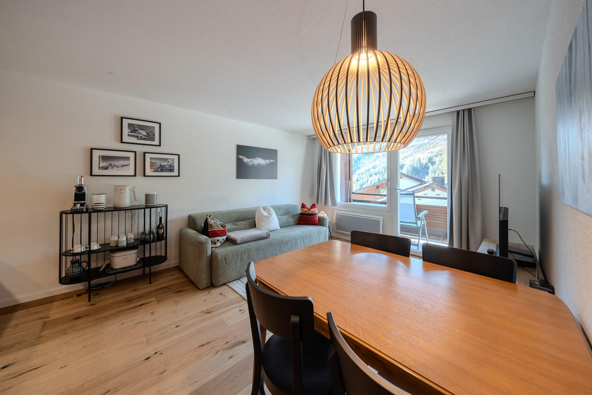 This cozy and renovated one-bedroom apartment is fully equipped and accommodates up to 3 guests – ideally two adults and one child, or two adults. It combines a modern, tastefully furnished interior with an unbeatable location in Hörnli. Just steps away from the Hörnli ski lift, hiking trails, and the bus stop. An incredible base to enjoy all the highlights of this wonderful destination in the Swiss Alps.
