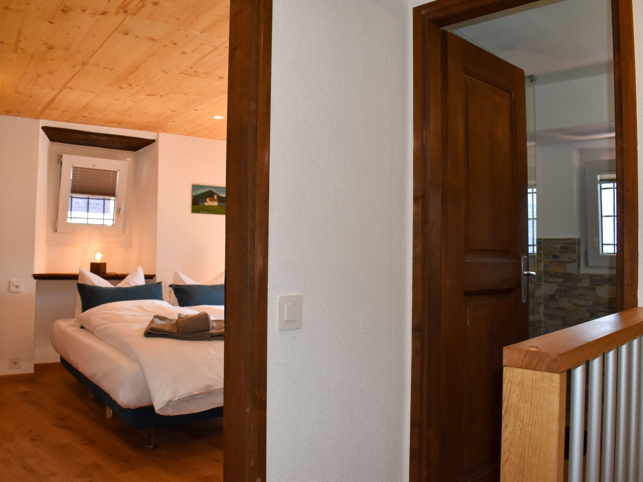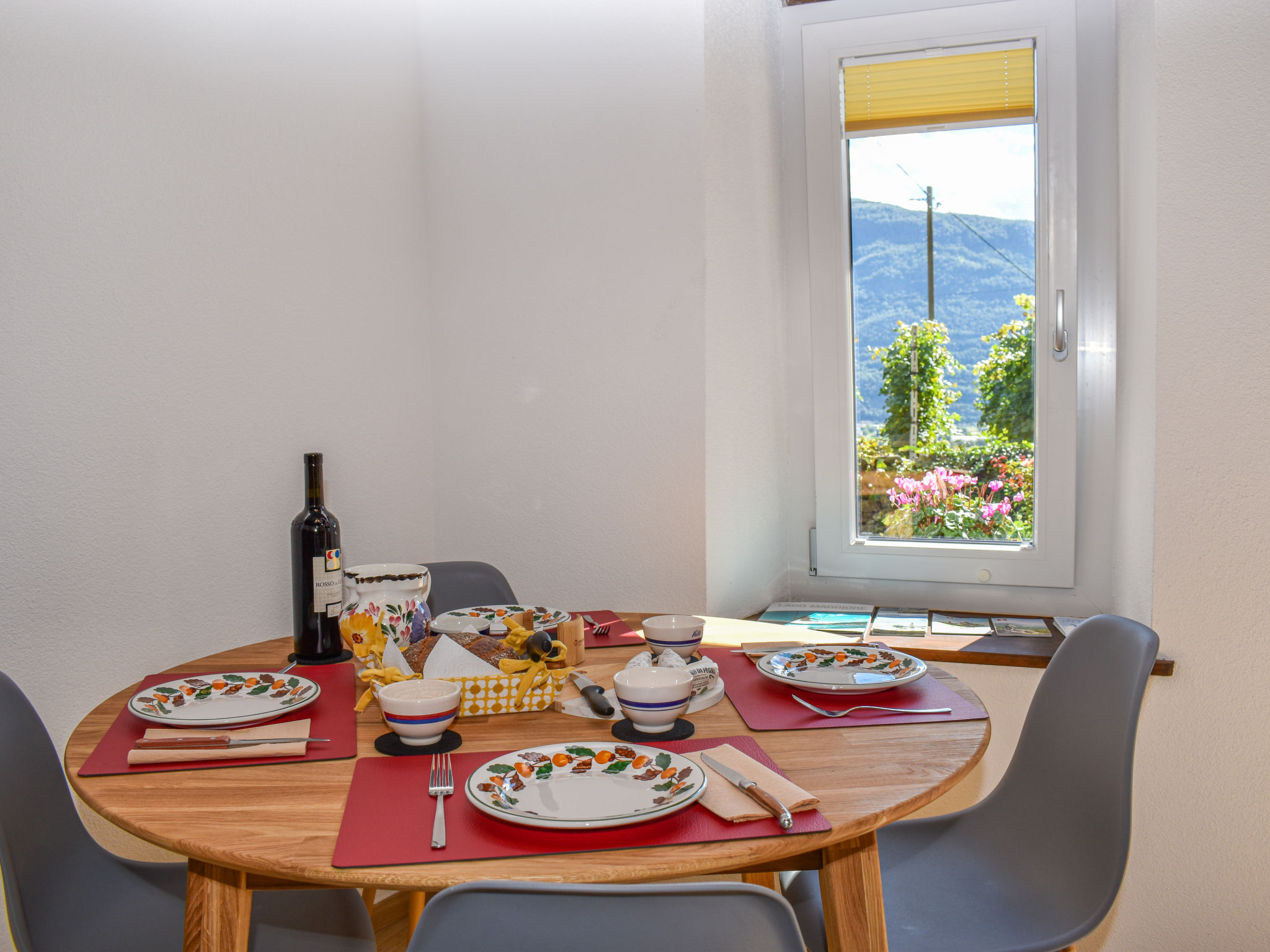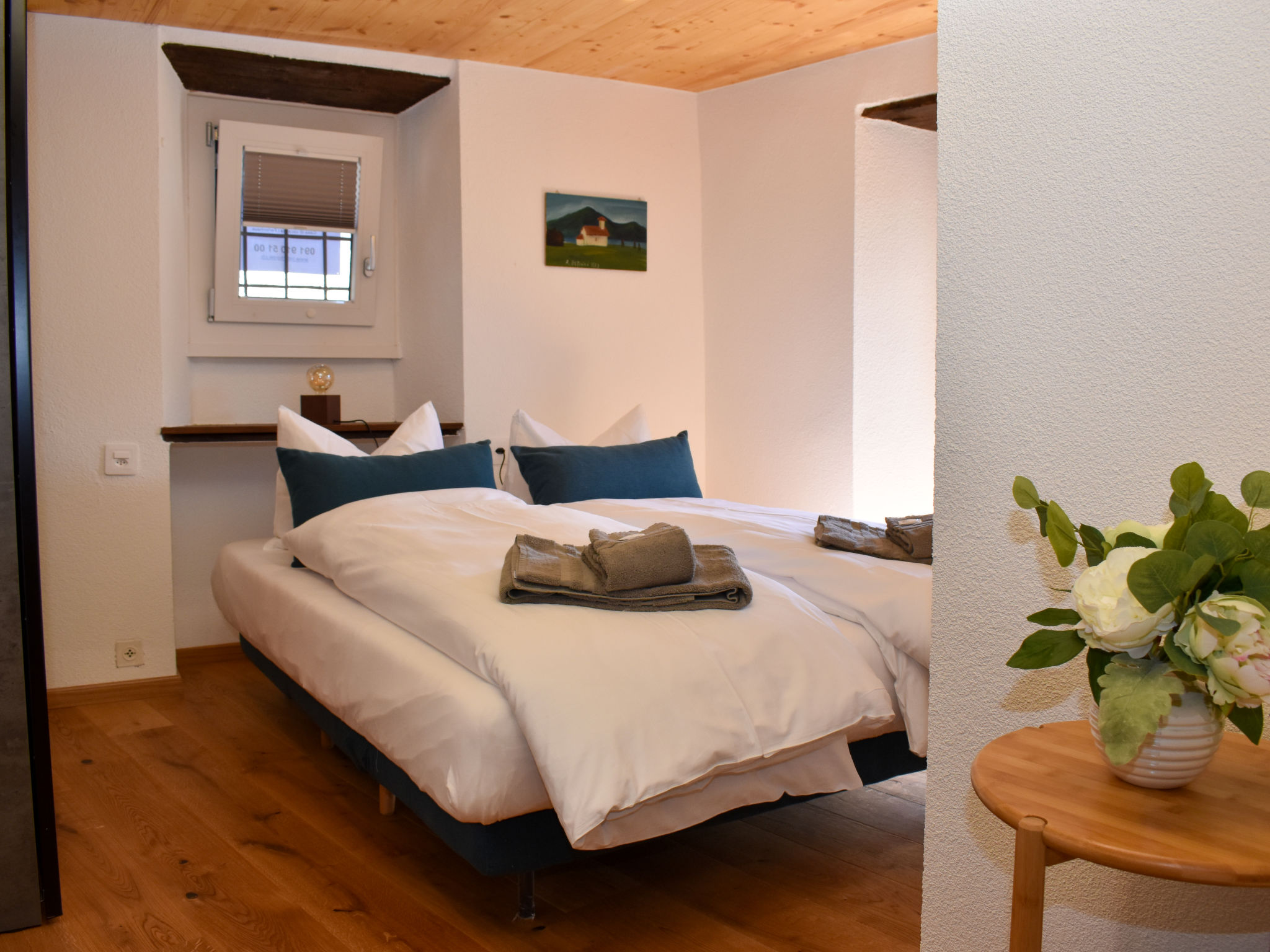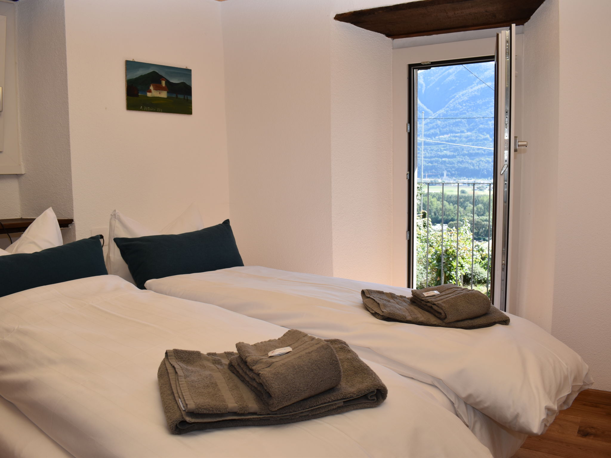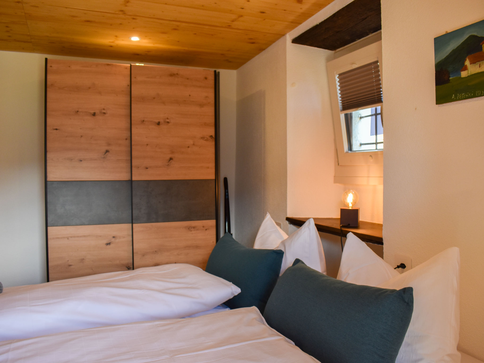 "Bertino 1892", 2-room house 30 m2 on 2 levels. Fully renovated in 2022, comfortable and modern furnishings: small kitchen-/living room (oven, 4 ceramic glass hob hotplates, toaster, kettle, electric coffee machine, Capsules for coffee machine (Dolce Gusto) extra, raclette grill) with dining table, satellite TV, flat screen, electric heating and wood-burning stove. Exit to the patio. Upper floor: 1 small double bedroom with 1 double bed (1 x 160 cm, length 200 cm). Exit to the balcony. Shower/WC. Electric heating. Patio partly roofed. Balcony furniture, barbecue. Very beautiful distant view of the lake, the mountains, the valley and the resort. Facilities: hair dryer. Internet (WiFi, free). Please note: non-smokers only. Maximum 1 pet/ dog allowed. NL-00003335