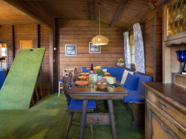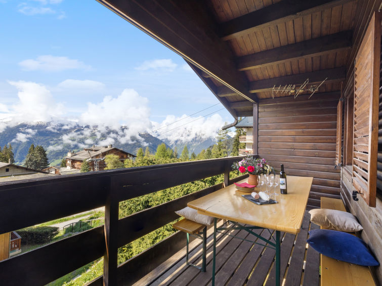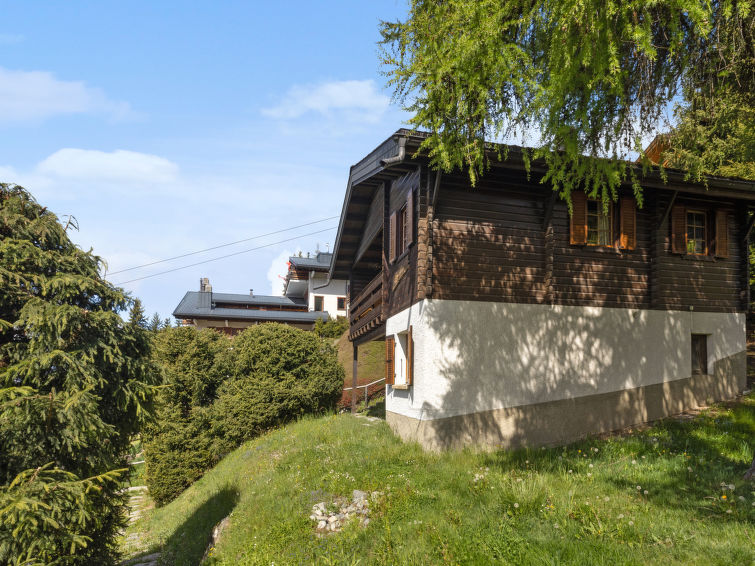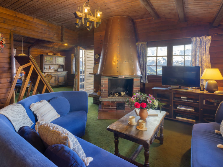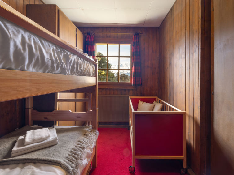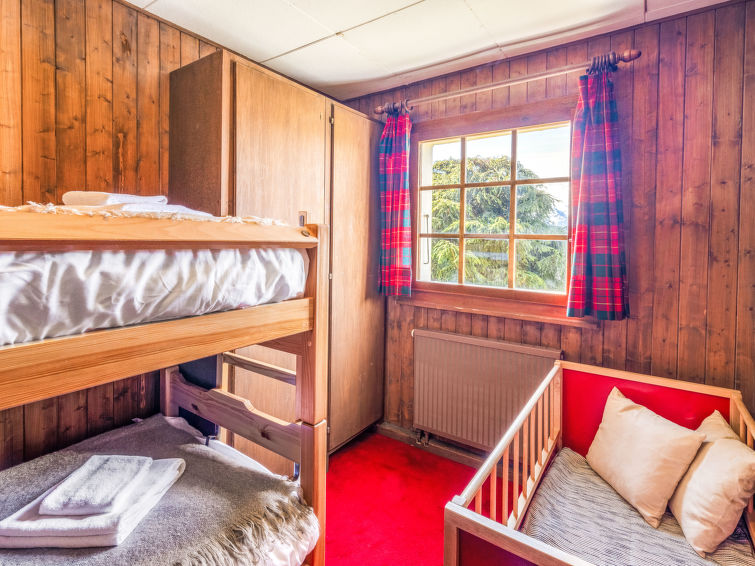"Brisca", 4-room chalet 104 m2 on 2 levels. Simple and practical furnishings: large living/dining room with open-hearth fireplace (only for decoration), kitchen corner and cable TV. Exit to the balcony. 1 small room with 1 french bed (1 x 140 cm, length 200 cm). Kitchenette (3 hot plates, oven, dishwasher, electric coffee machine, Capsules for coffee machine (Nespresso) extra, raclette grill, fondue Set (cheese)). Bath/shower/WC. Oil heating. On the lower ground floor: (steep stair), 1 small room with 1 x 2 bunk beds (90 cm, length 200 cm). 1 small room with 1 double bed (2 x 80 cm, length 200 cm). Bath/WC. Carpet. Large balcony. Beautiful view. Facilities: washing machine, dryer, baby cot. Internet (WiFi).