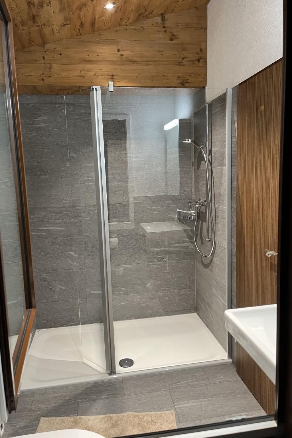 The interior comprises 2 bedrooms, with an extra bed for a fifth person in the children's room. A spacious, modern bathroom with a large walk-in shower promises pure relaxation. In the living room, a cosy fireplace ensures warm evenings, while the well-equipped kitchen with dishwasher, oven, large fridge with three freezer drawers and even a fondue rechaud leaves nothing to be desired. A Nespresso machine is available for coffee lovers, and in summer there is a barbecue for outdoor culinary experiences.