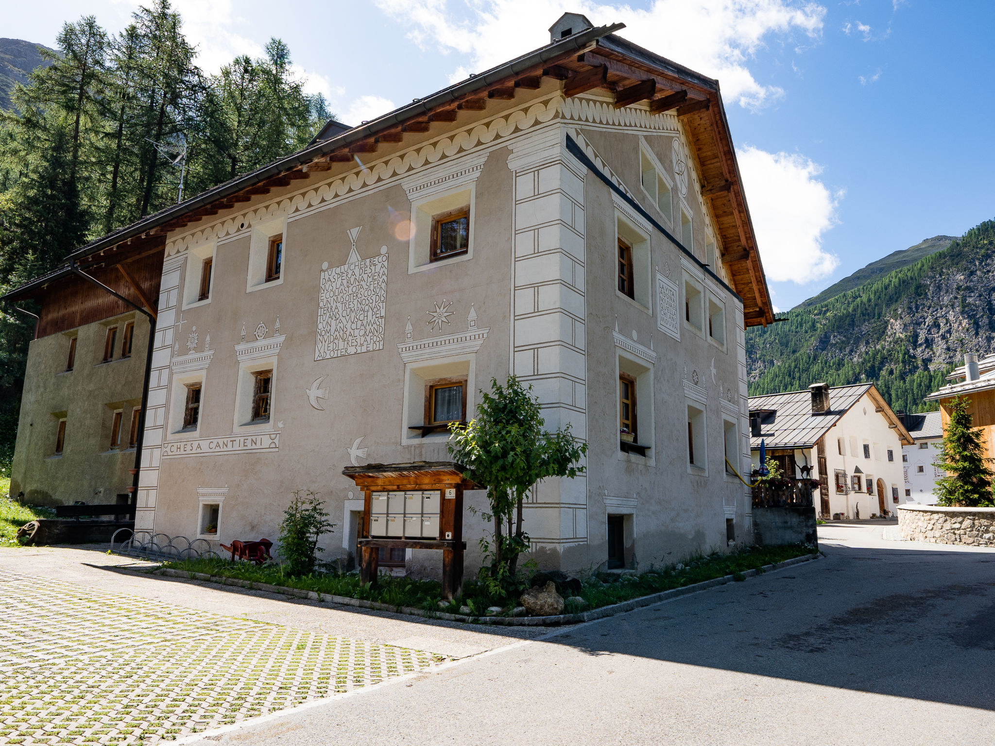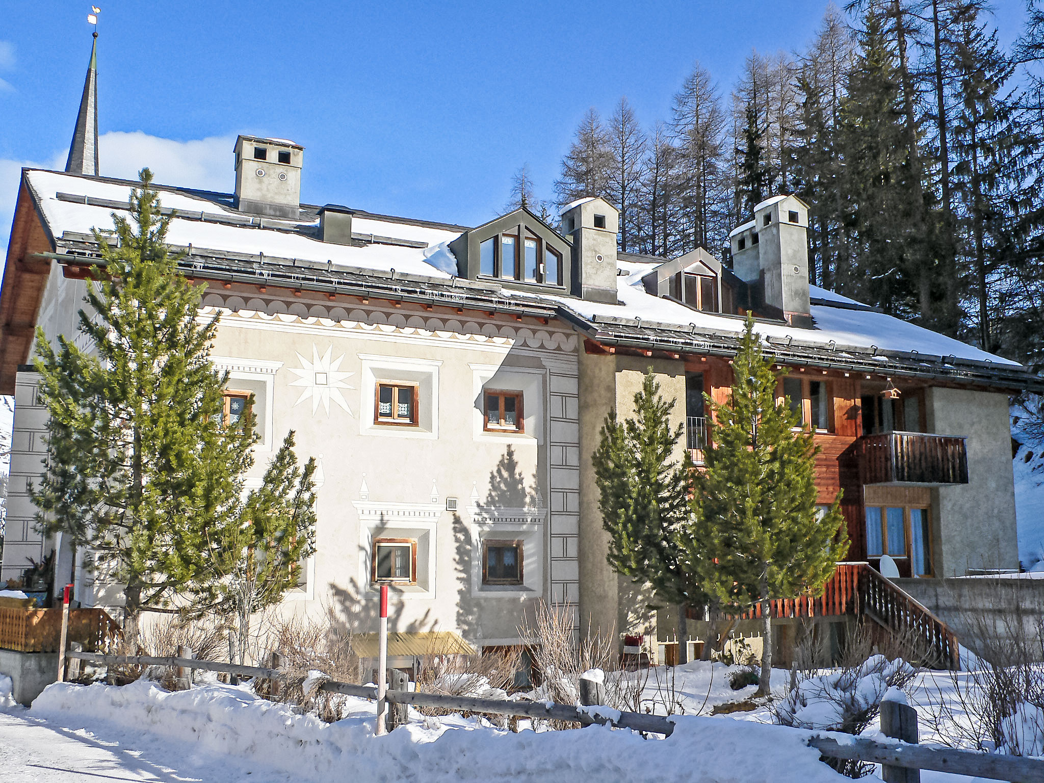 La Punt Chamues-ch 14 km from St. Moritz: The house is right next to the village church, whose bells ring every hour. Apartment house "Chesa Cantieni". On the outskirts, in a sunny position, 14 km from the lake. In the house: storage room for skis, central heating system, washing machine, tumble dryer (for shared use). Communal covered parking at 150 m. Shop 950 m, grocery 950 m, restaurant 400 m, bakery 950 m, café 400 m, bicycle rental 550 m, bus stop "Chamues-ch, plaz" 120 m, railway station "La Punt-Chamues-ch" 1.2 km, indoor swimming pool 15 km, lake St. Moritzer See 14 km. Golf course (18 hole) 5 km, surf school 20 km, indoor tennis centre 16 km, minigolf 16 km, riding stable 1.2 km, walking paths from the house 400 m, cycle lane, cable car 11 km, ski lift 6 km, ski rental 550 m, ski school 6 km, children's ski school 600 m, sled run 6 km, cross country ski track 400 m, ice rink 650 m, children's playground 1.2 km. Nearby attractions: Caferama Badilatti in Zuoz 5 km, Nationalparkzentrum in Zernez 21 km. Well-known ski regions can easily be reached: Zuoz Familienskigebiet 6 km, Corviglia - Piz Nair 15 km, Diavolezza - Lagalb 25 km. Well-known lakes can easily be reached: St. Moritzer See 14 km, Silvaplaner See 20 km, Silser See 25 km. Hiking paths: Albula Pass - SAC Es-cha Hütte, Schweizer Nationalpark / Val Trupchun, Muottas Muragl. Please note: no lift.