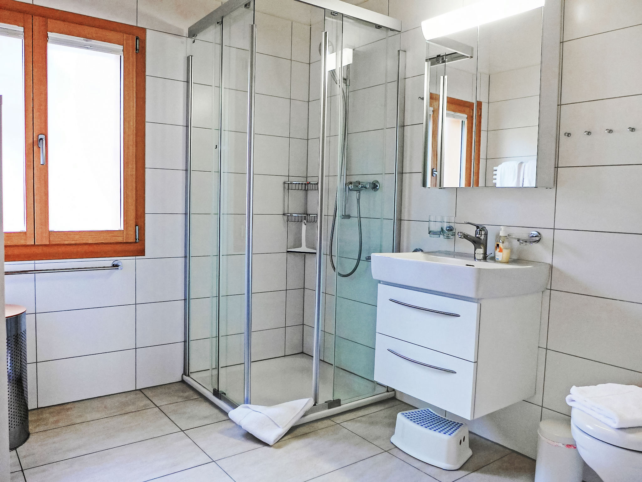 4-room apartment 90 m2, on the top floor, south facing position. Spacious and bright, partly with sloping ceilings, cosy and wooden furniture furnishings: living/dining room with cable TV (flat screen), radio. Exit to the balcony, south facing position. 1 room with 1 bed (90 cm, length 200 cm). 2 double bedrooms (2 x 80 cm, length 200 cm). Kitchenette (2 hot plates, toaster, kettle, microwave, electric coffee machine, Capsules for coffee machine (Nespresso) extra, raclette grill, fondue Set (cheese)). Shower/WC. Underfloor heating. Parquet floors. Balcony, south facing position. Balcony furniture. Marvellous view of the mountains and Eiger. Facilities: hair dryer. Internet (WiFi, free). Parking (roofed) at the house. Please note: non-smokers only. Fire extinguisher.